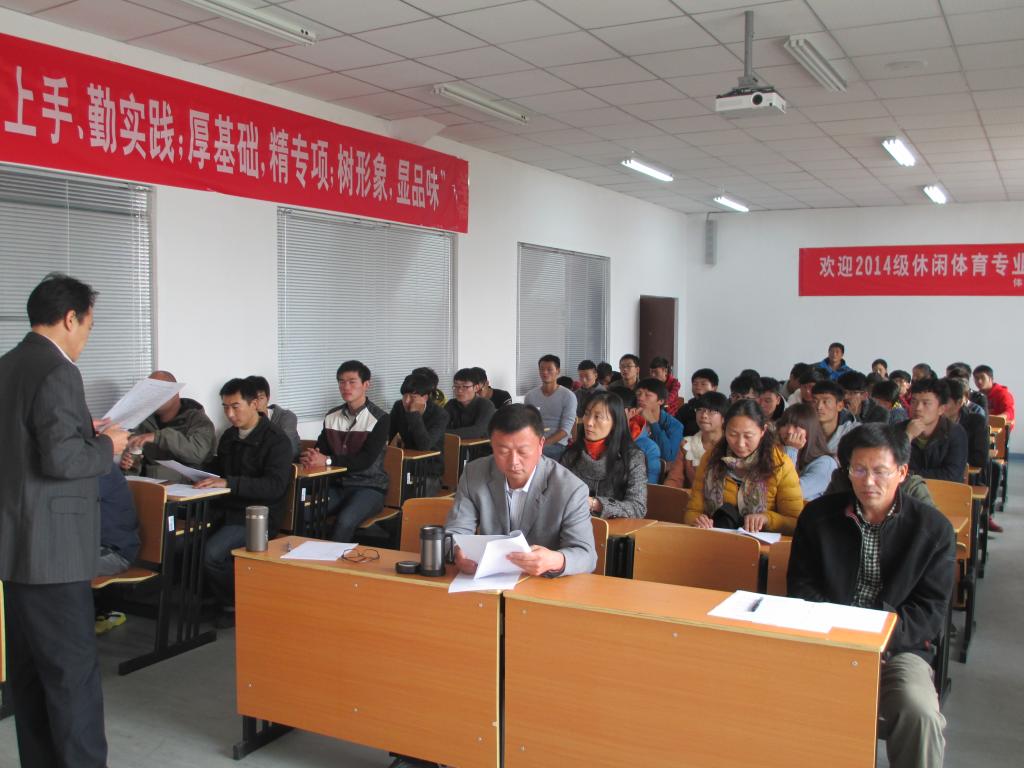 为进一步加强休闲体育专业学风建设,营造“人人参与、层层负责”的迎接审核评估、推进学风建设的良好氛围,体育教研部于2014年11月8日下午2:30在校主体育场212教室召开休闲体育专业导师工作暨学风建设工作会议,部门领导、专业导师、班主任、辅导员及全体休闲体育专业学生参加会议。会议上由周庆功教授首先宣读《淮海工学院关于进一步加强和改进学风建设的实施意见》,张伦厚副主任宣读《体育教研部休闲体育专业导学制实施办法》并与师生们共同学习学生处处长汤洪涛在校2014年评优表彰暨学风建设推进会上的讲话精神,孙兵书记宣读《体育教研部学风建设实施方案》并与师生们共同讨论相关方案的具体实施细则,最后专业导师们逐一自我介绍并与学生们进行了分组交流活动。