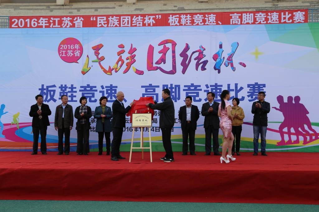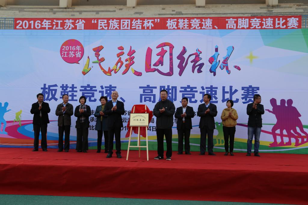 在热烈的掌声中,淮海工学院党委副书记、副校长宁晓明,江苏省民委民族处处长刘克元共同为我校江苏省少数民族传统体育项目训练基地揭牌。