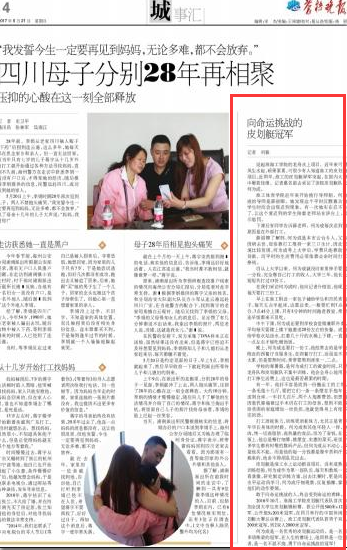何为成是一名优秀的皮划艇运动员,是一名获多项殊荣的冠军。在人生的赛场上,他同样是一位强者,是一名不屈不挠、勇于向命运挑战的冠军!