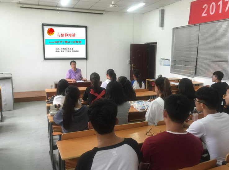 体育学院院长周庆功老师于2017年9月11日上午9:00在主体育场212多媒体教室举为2017级休闲体育全体新生们做 “与信仰对话——体育学子学业规划”主题教育讲座,体育学院党总支书记刘传祥、班主任韩传来、辅导员武传钟及部分学生干部们参加了本次报告会。