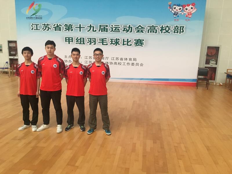 江苏省第十九届运动会高校部羽毛球比赛近日在苏州科技大学落下帷幕。我校羽毛球队经过选拔,派出了4名男队员参加了本次比赛。取得了继第十八届运动会高校部羽毛球比赛女子团体第二名后,男子项目取得新突破,其中男子团体进入16强,男子双打取得第四名的较好成绩。