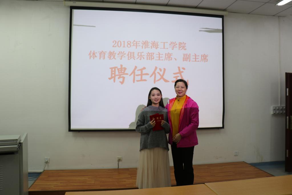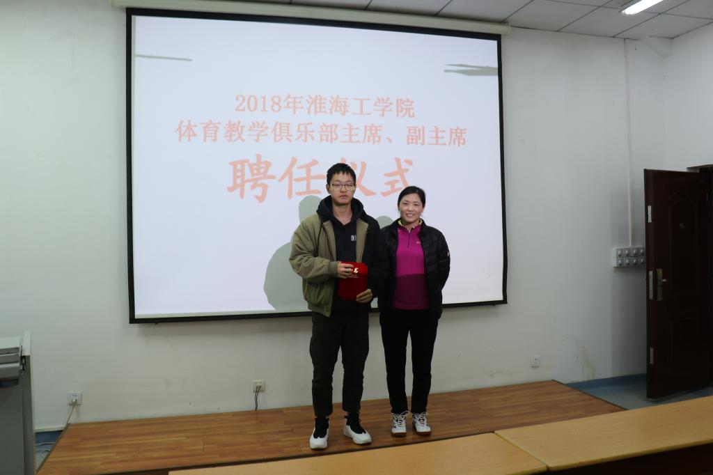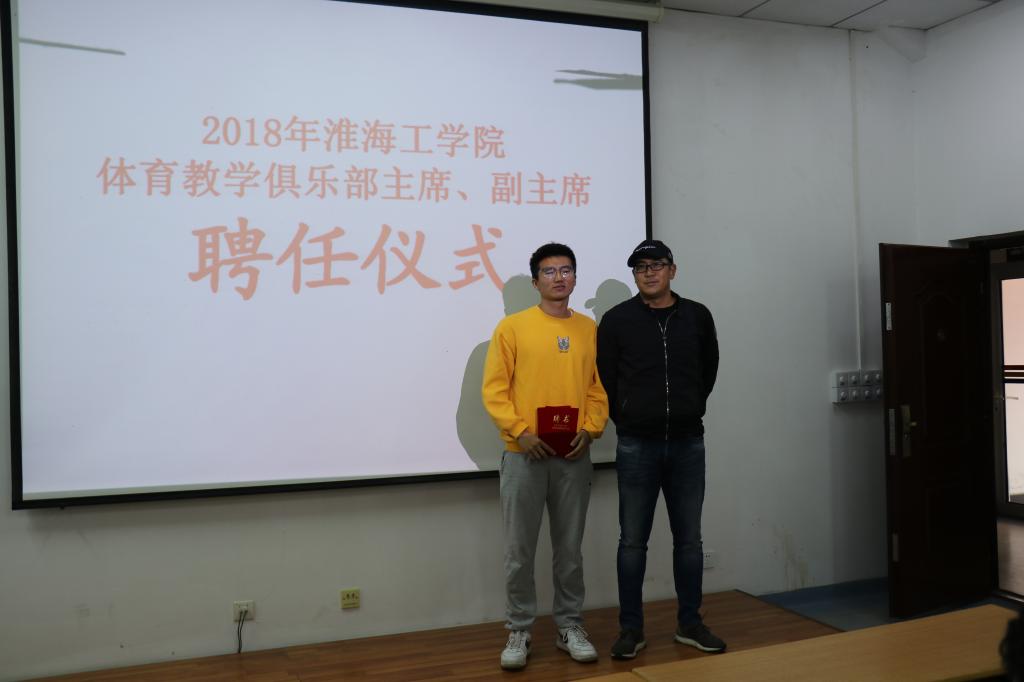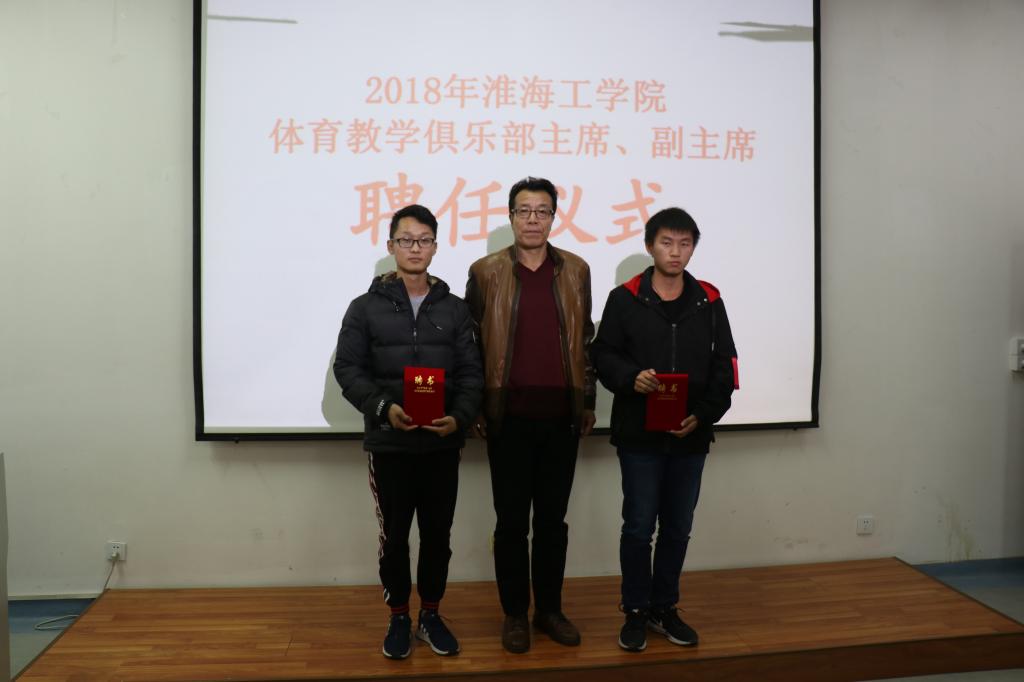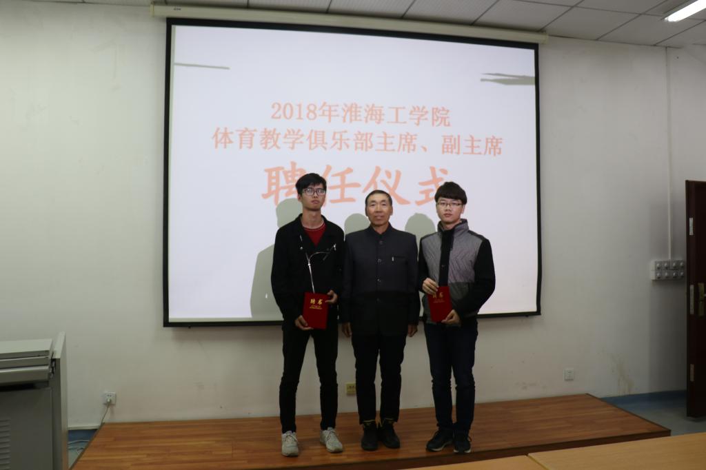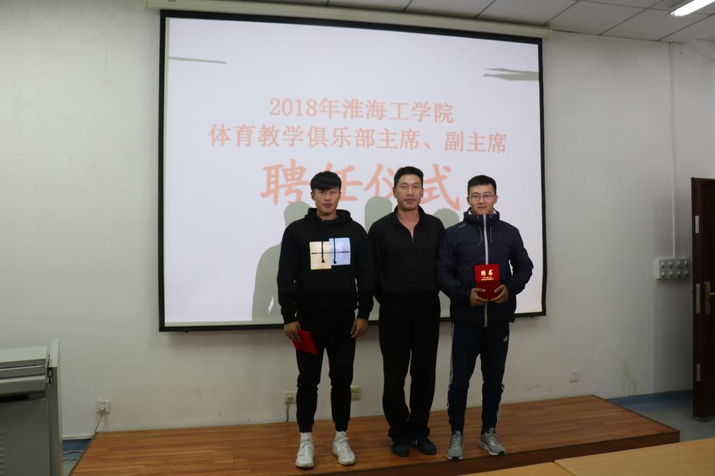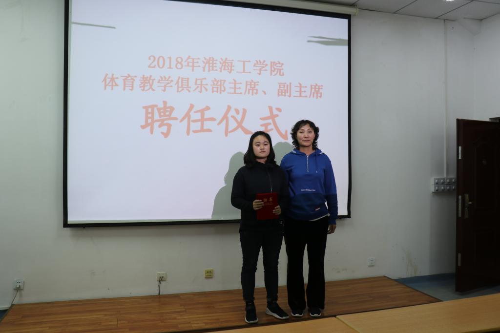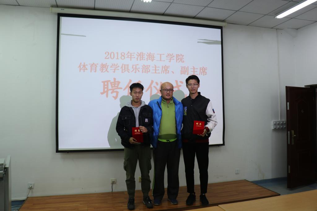 随后,体育学院书记阙建定、院长周庆功及各单项俱乐部牵头教师依次为17个俱乐部主席、副主席颁发了聘书并与学生合影。最后,体育学院第三教研室主任陆守芹对俱乐部主席的工作作具体的安排与布置。