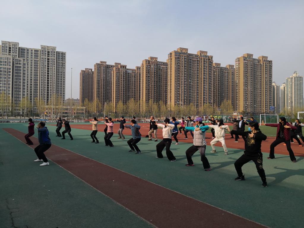 4月8日下午三点,体育学院全体教职工在主运动场进行健身气功·八段锦的集体备课教研活动。