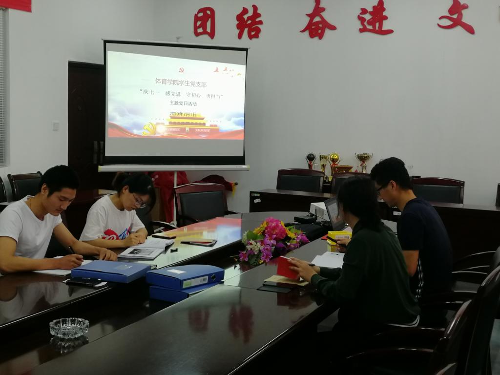在喜迎中国共产党成立99周年之际,为进一步教育引导广大学生党员“不忘初心、牢记使命”,树立“一名党员一面旗帜”的意识,大力推进学院学生工作扎实开展。7月1日,体育学院学生党支部于会议室开展了主题为“庆七一,感党恩,守初心,勇担当”主题党日活动。