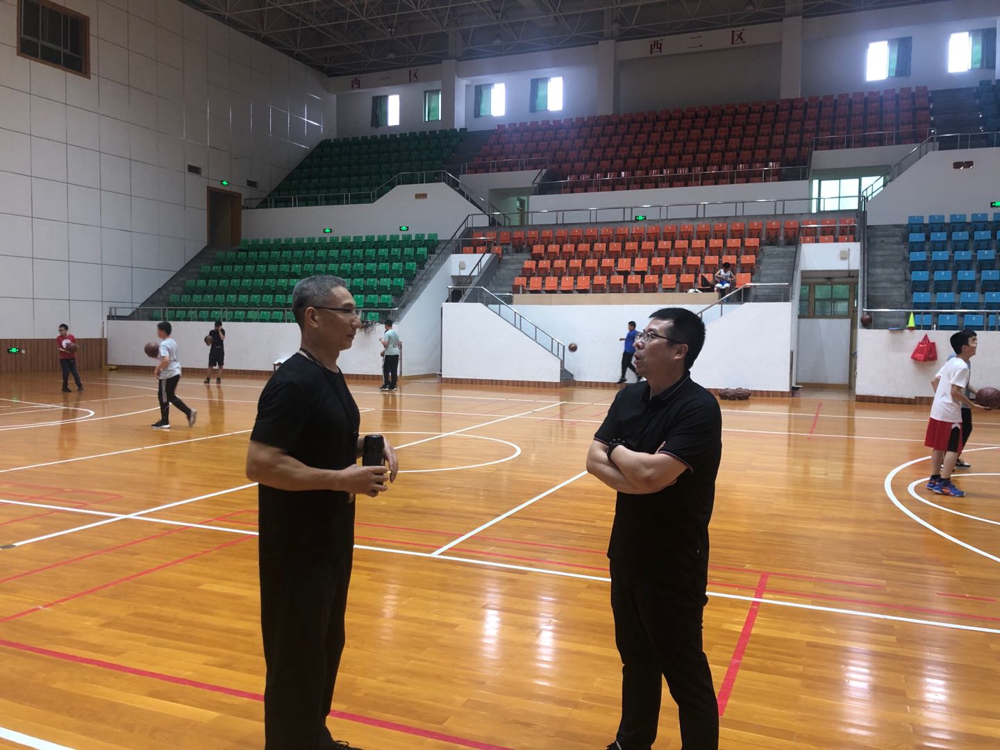 7月11日下午16时许,体育学院院长赵宏在实验室与场馆中心主任朱建国的陪同下看望了暑期篮球培训班的教练员、工作人员,赵宏详细了解了培训班的学员情况、疫情防控落实情况并与他们进行了亲切的交谈,对他们的辛勤付出表示感谢。