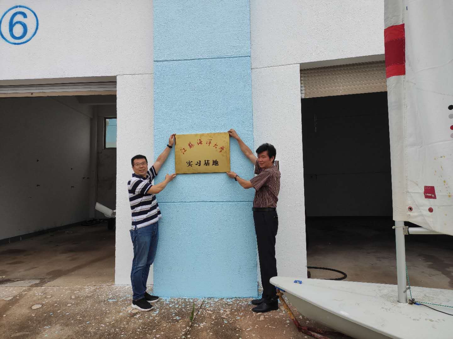 根据江苏省体育局与江苏海洋大学双方共水上建高水平运动队的合作协议,省体育局将水上运动管理中心连岛海上训练基地作为江苏海洋大学学生实习实践基地,并为大学生的实习实践活动提供保障,2020年8月6日“江苏海洋大学连岛学生实习基地”正式挂牌。江苏省体育局水上运动管理中心主任刘翊群与江苏海洋大学体育学院院长赵宏为实习基地挂牌,参加实习基地挂牌仪式的嘉宾还有江苏省体育局水上运动管理中心项目发展部部长孙卫、江苏海洋大学体育学院书记张萍和副院长张伦厚。