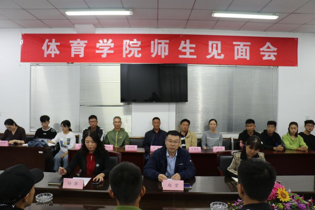 10月10日下午,体育学院师生见面会在体育楼会议室举行,体育学院院长赵宏、党总支书记张萍、各系室(中心)主任、教师代表,以及2020级全体新生参加了见面会。见面会由体育学院副书记、副院长孙萍主持。