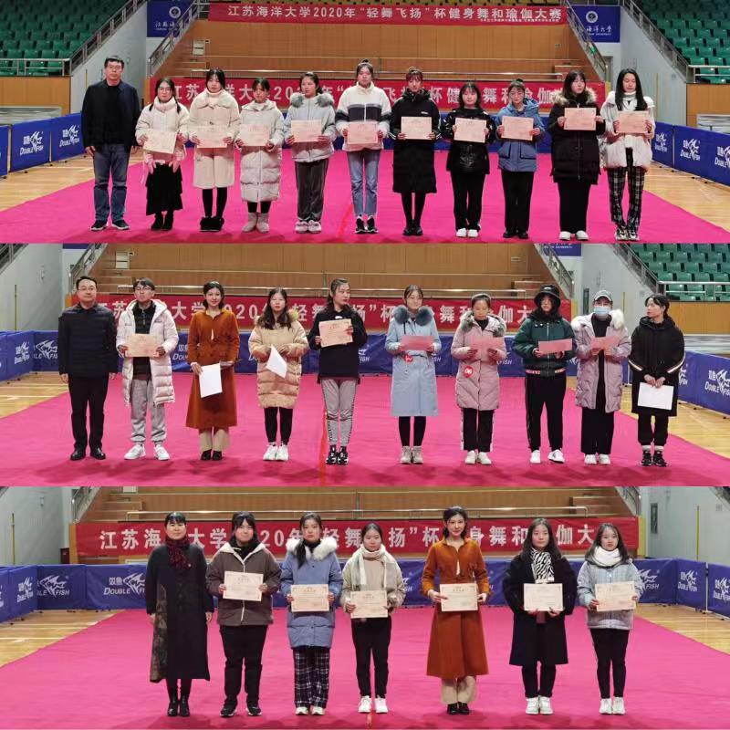 本次比赛四个项目都进行了精彩的表演,可谓是异彩纷呈,舞出了健身舞的魅力和瑜伽的优雅。最后,江苏海洋大学团委书黄吉庆、体育学院赵宏院长、体育学院张萍书记分别为大赛获奖同学进行了颁奖。