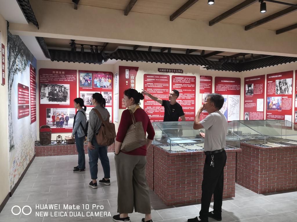 在黑林镇大树村党群服务中心,全体党员了解到大树村党组织依托沃田集团,积极开展组织联建、产业联创,逐步解决了革命老区贫困问题。进入新时代,村“两委”班子立足刘少奇旧居红色底蕴,传承红色文化,发展红色旅游,背靠绿色林果和红色精神两棵“大树”,走出了一条“红色大树 绿色发展”富民兴村幸福道路。