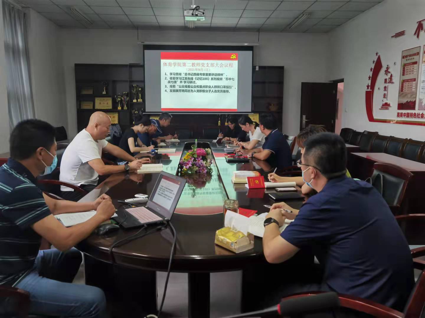 9月1日下午4点,体育学院第二教师党支部全体党员在学院会议室召开大会进行集中理论学习,赵宏院长以普通党员身份参加会议,会议由支部书记何金同志主持。
