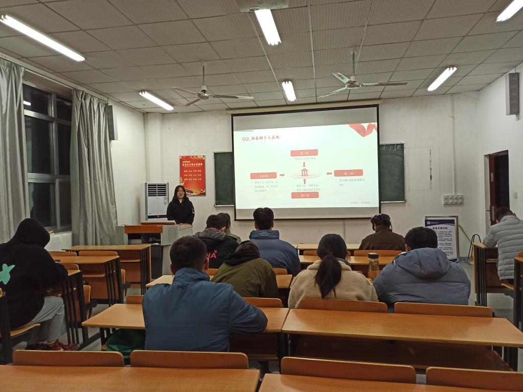答辩会分为个人汇报、现场答辩环节。2名预备党员分别从思想政治表现、学习工作情况、模范带头作用发挥、存在问题和不足以及今后努力的方向等方面对预备期个人表现进行了汇报。答辩考评小组围绕学生党员引领作用发挥、个人不足指出改正等方面进行现场提问,预备党员们认真思考,积极作答。表示要进一步加强理论学习,不断加强党性修养,在工作、学习、生活中都能起到先锋模范作用。