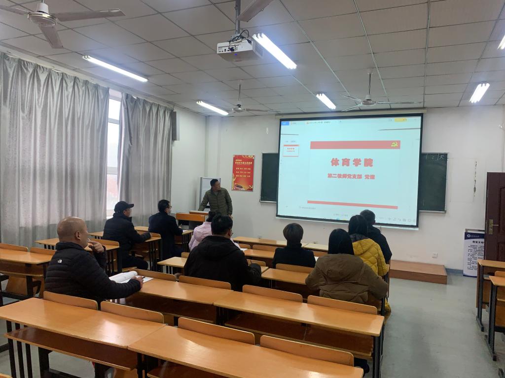 12月15日下午3点,体育学院第二教师党支部全体党员,在学院212多媒体教室集中上党课并进行政治理论学习。