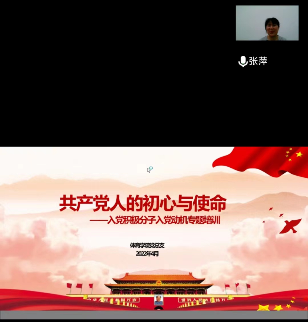2022年4月25日晚,体育学院党总支通过腾讯会议举办了第五期入党积极分子培训班开班典礼。会议由学院党政办主任张桂玲主持,党总支书记张萍参加了开班典礼,本期16名积极分子参加了培训。