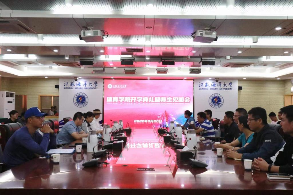 体育学院于9月20号下午在会议中心东海厅举行2022级新生开学典礼暨师生见面会。开学典礼采用线上线下结合的方式举行,学院领导班子、各系室(中心)主任、教师代表以及2022级全体新生参加了会议。会议由体育学院副书记孙萍主持。