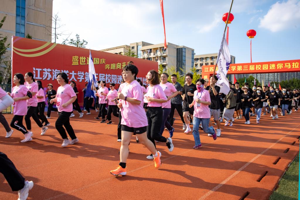 9月28日下午,在中华人民共和国即将迎来73周年华诞之际,江苏海洋大学第三届“盛世迎国庆、奔跑向未来”校园迷你马拉松比赛欢乐开赛。开幕式由副校长严云洋主持,校长宁晓明、校党委副书记史顺良、副校长舒小平,纪委书记陈先宏出席了开幕式,史顺良致开幕词。