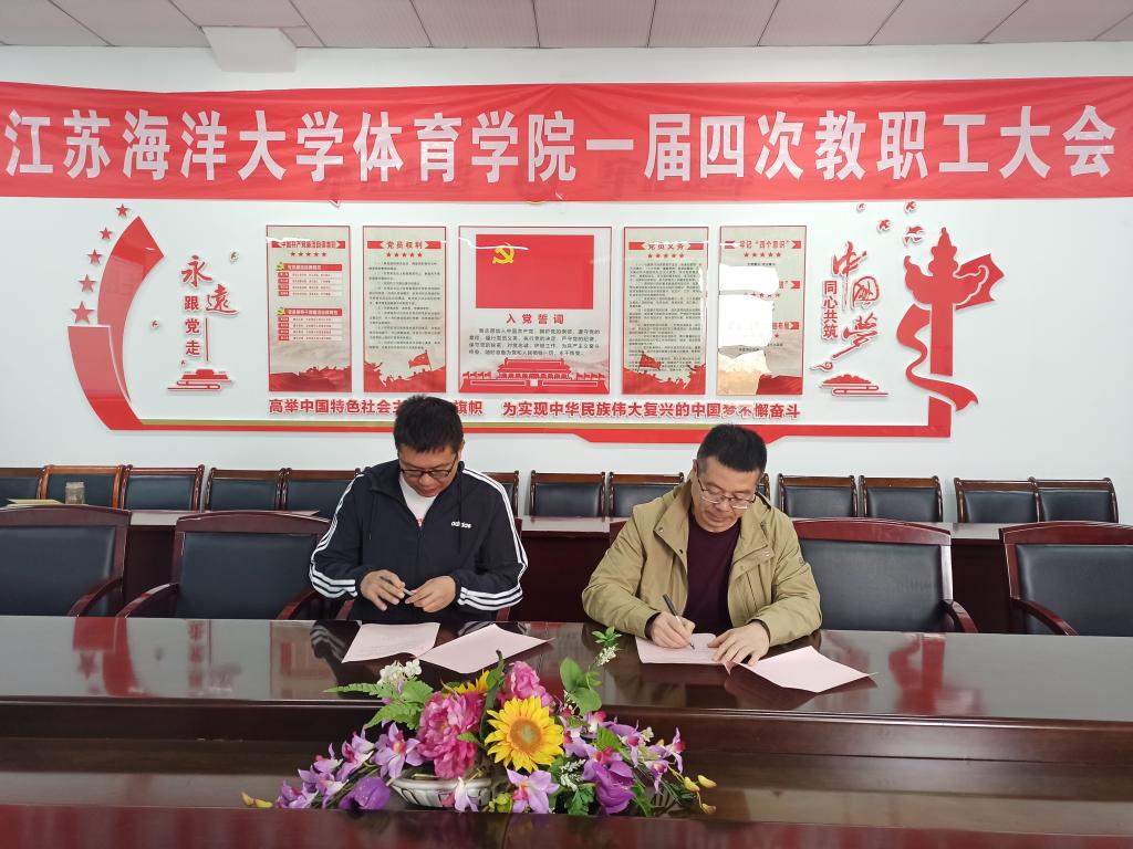 最后按照“党政齐抓共管”的安全稳定工作要求,张萍书记和赵宏院长分别与各系教研室、中心负责人签订了《体育学院安全稳定工作责任书》。