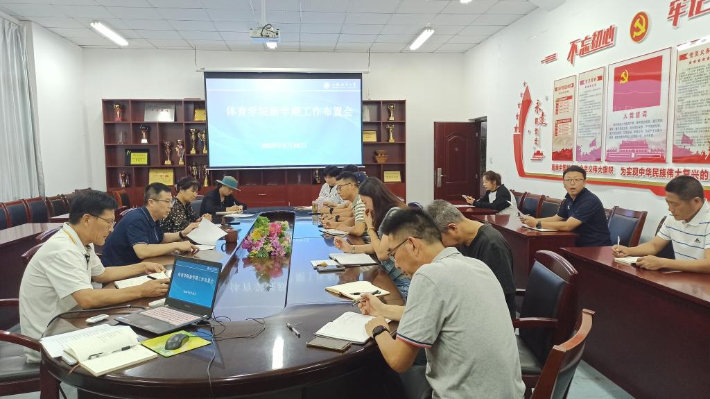 8月28日下午,体育学院召开新学期工作布置会,会议由院长赵宏主持,学院全体领导班子成员、各系室中心正副主任及各党支部委员参加了会议。