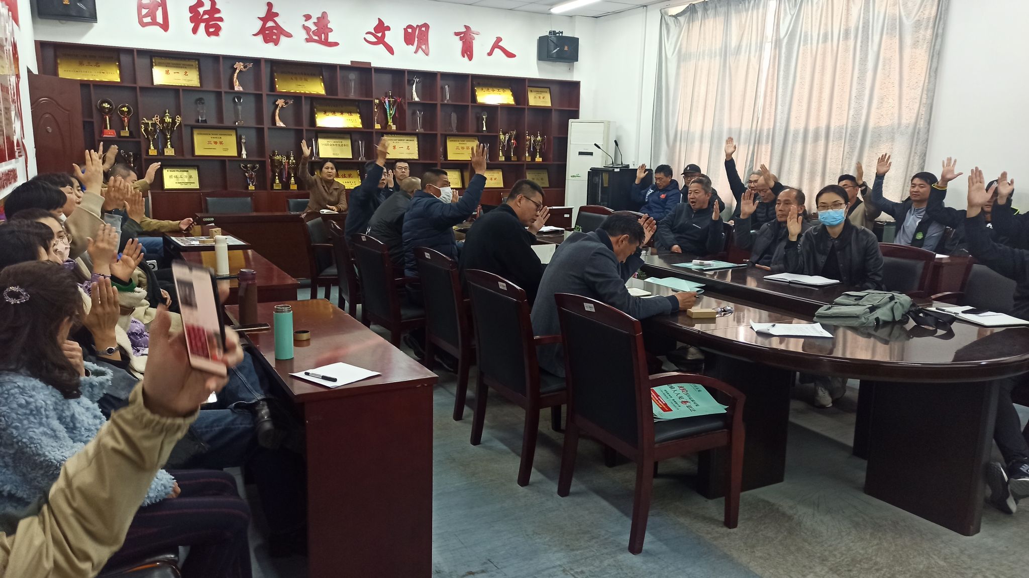 赵宏院长对年终绩效分配办法作了说明,解读了新修订的《体育学院奖励性绩效工资二级分配实施方案》、《体育学院基础性绩效量化考核实施细则》、《2023年纵、横向科研到账经费奖励办法(试行)》,全体教职工对分配办法进行了举手表决,全体教职工应到49人,实到43人,同意票43票,全票通过。
