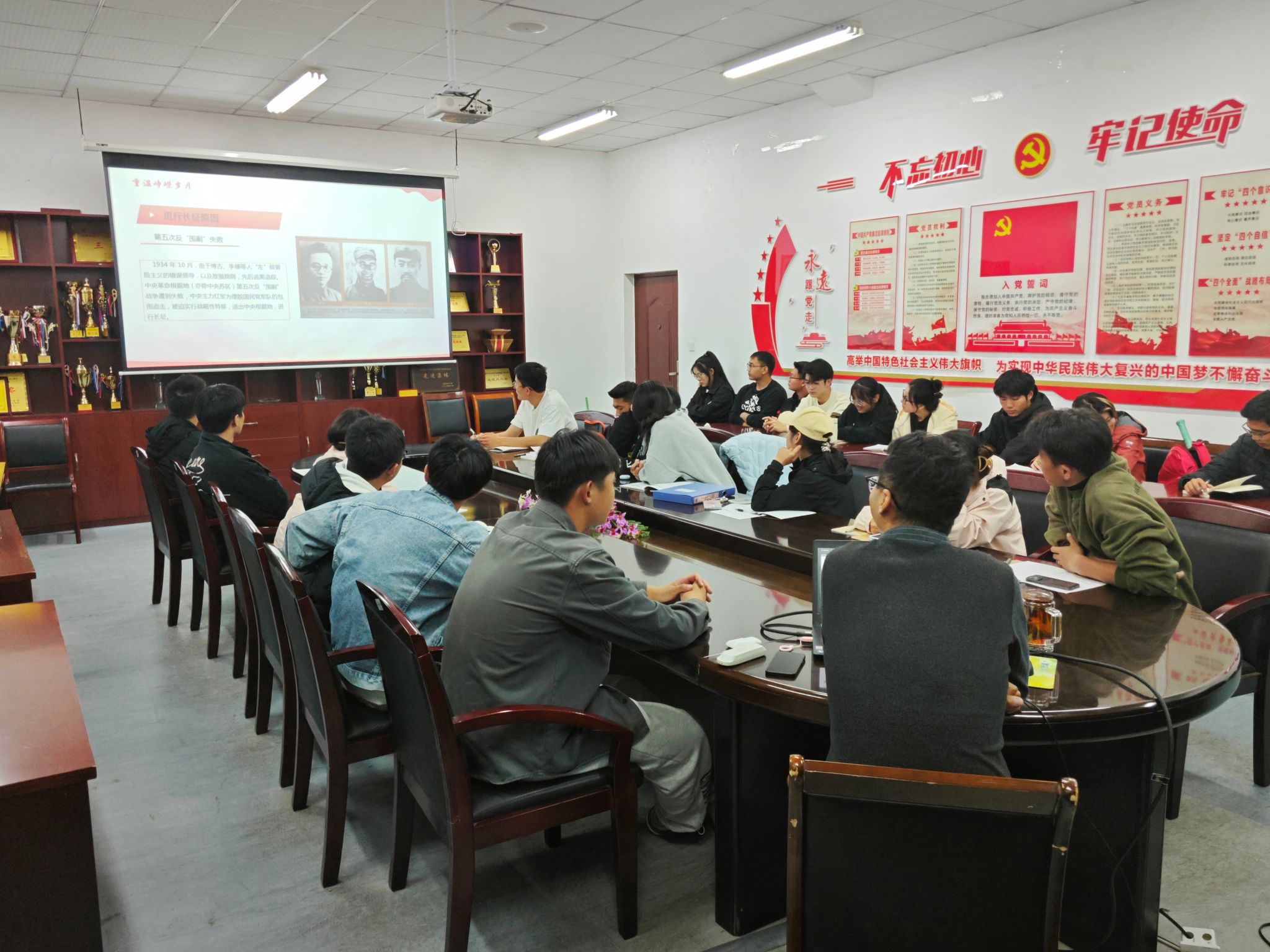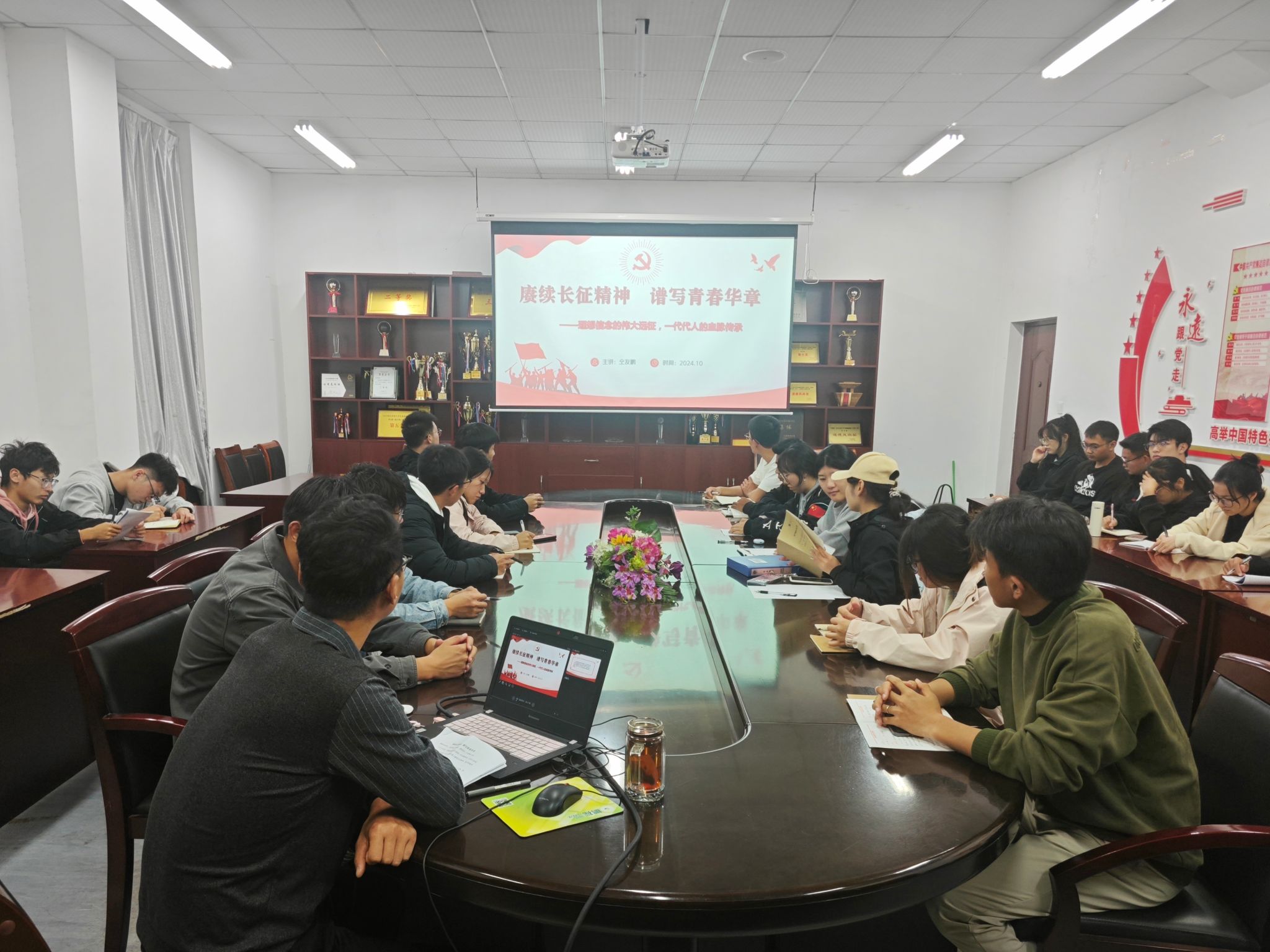 1031日,我院学生党支部书记仝友鹏为学生党支部全体党员、入党积极分子及主要学生干部,精心讲授了一堂题为《赓续长征精神,谱写青春华章的精彩党课。