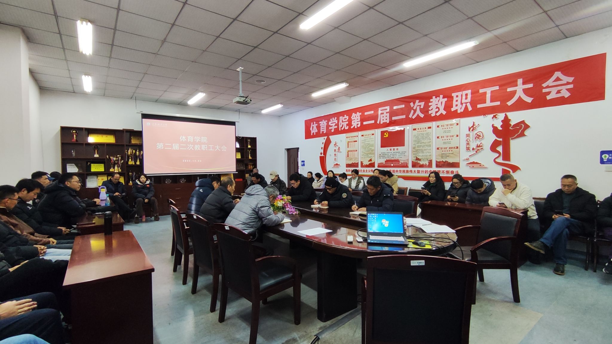 1224日下午,体育学院第二届二次教职工大会在学院会议室胜利召开。会议由分工会主席李淑华主持,全体教职工参加会议。