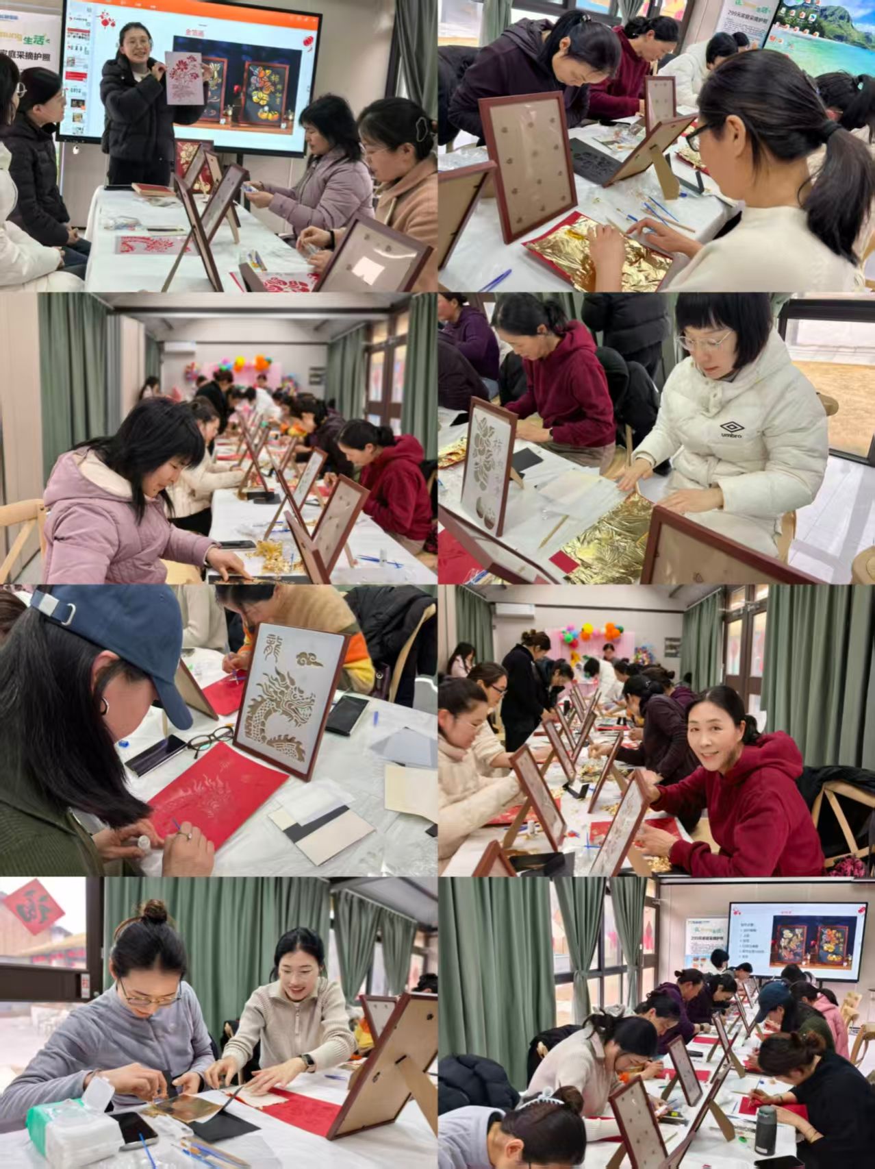 当天下午14:00,老师们准时集合出发,奔赴活动目的地。抵达龙小在・七彩田园后,一场独具匠心的非遗手工体验——金箔画制作拉开活动帷幕。指导老师通过PPT生动讲解了金箔画的历史渊源与制作工艺,让大家对这项古老技艺的文化底蕴有了深刻认识,详细讲解了金箔画制作每一步的要点与诀窍。大家认真学习金箔画的制作技巧,从构图勾勒到金箔粘贴,细致专注地将巧思与匠心融入作品,亲身感受非遗文化的独特魅力与手工制作的乐趣。