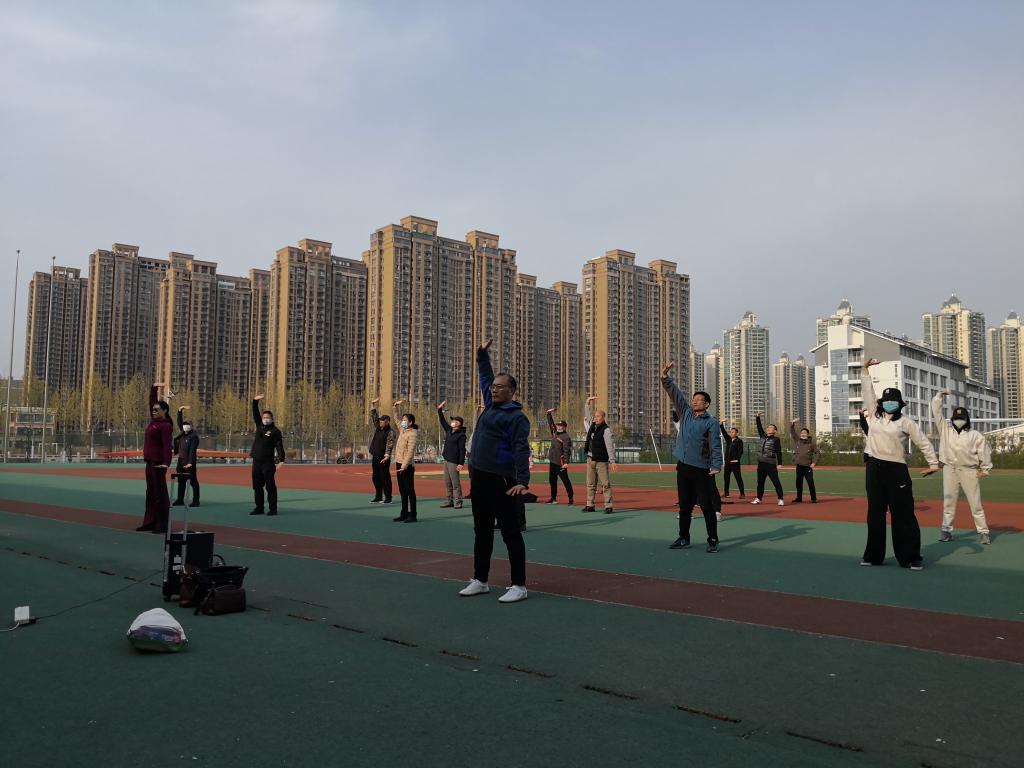 4月8日下午三点,体育学院全体教职工在主运动场进行健身气功·八段锦的集体备课教研活动。