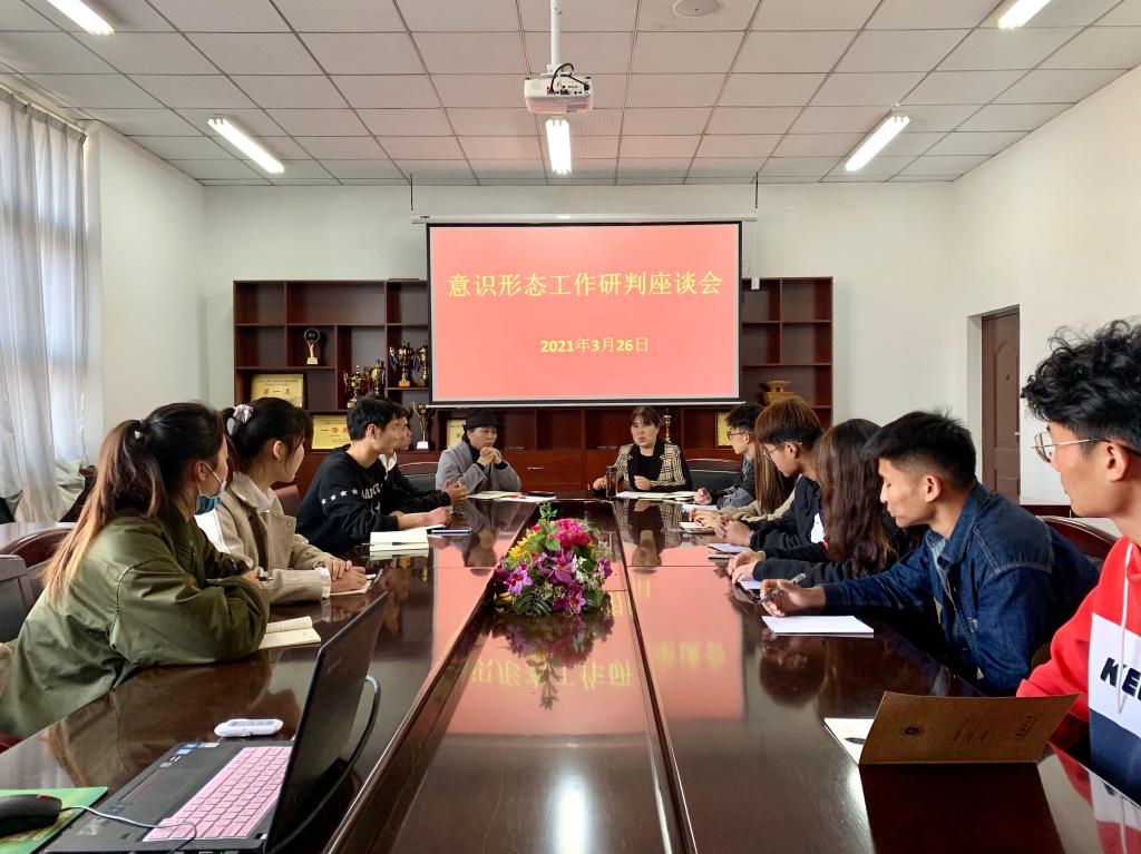 为进一步加强和改进体育学院师生的意识形态工作,3月26日体育学院分别召开教师、学生意识形态工作研判座谈会。体育学院党总支书记张萍、副书记孙萍分别主持了师生座谈会,体育学院各党支部书记、支部委员、教务秘书、班主任及院团学组织主要学生干部参加了会议。