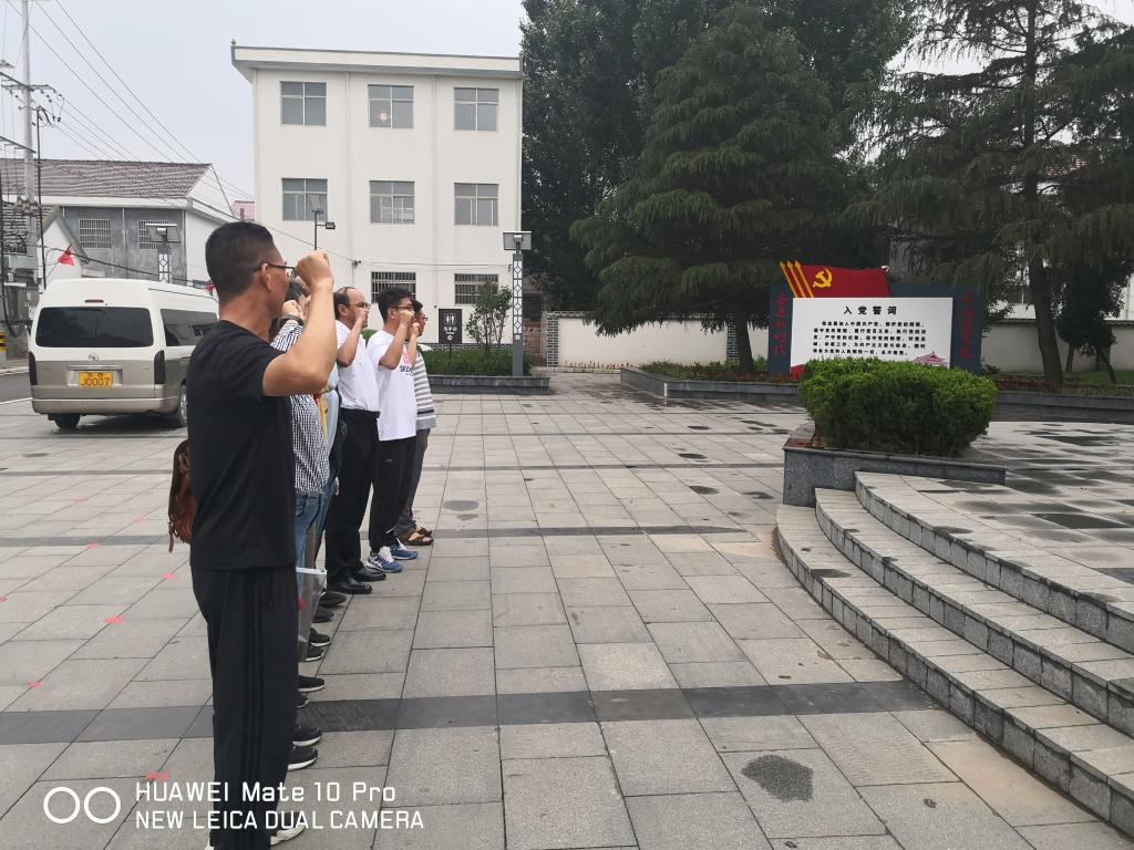 在赣榆区黑林镇大树村刘少奇旧居和新四军115师师部住址,党员们参观并详细了解刘少奇1942年在大树村期间,指导抗日革命斗争、发动村里的贫苦农民开展减租减息运动、宣传指导建立第一个农民组织职工会的工作情况。在“不忘初心,砥砺奋进”展厅现场接受党史学习教育,感受革命先烈和共产党人对理想信念的执着追求和对革命事业的无比忠诚。在黑林镇大树村刘少奇广场,全体党员在党支部书记黄伟业带领下,面对党旗,重温了入党誓词。