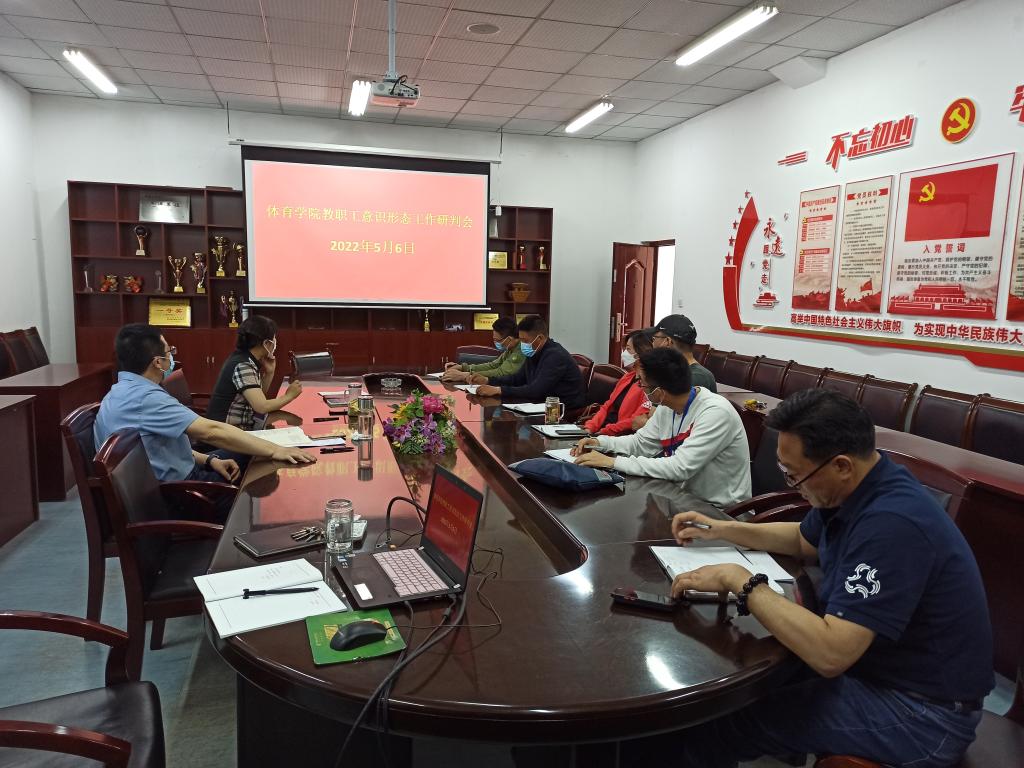 为切实把意识形态工作抓紧、抓实,2022年5月6日上午,体育学院召开教职工意识形态工作研判会,党总支委员、各党支部班子成员参加了会议,会议由党总支书记张萍主持。