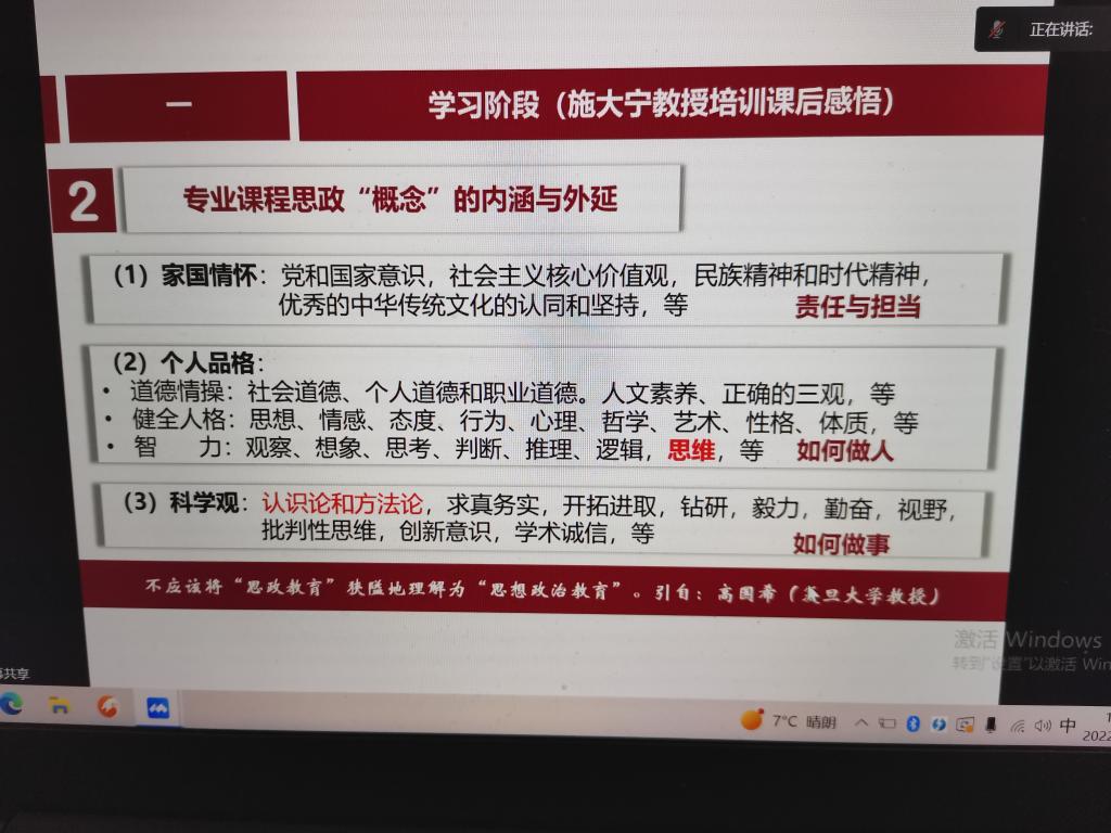 赵国栋博士作“思政元素融入体育专业课程心得体会”专题报告,他从学习、研究、实践、成效、感悟五个方面分享了他开展课程思政的具体做法和收获。与会老师围绕赵国栋博士的报告和自己的课程思政实践进行了热烈的讨论。