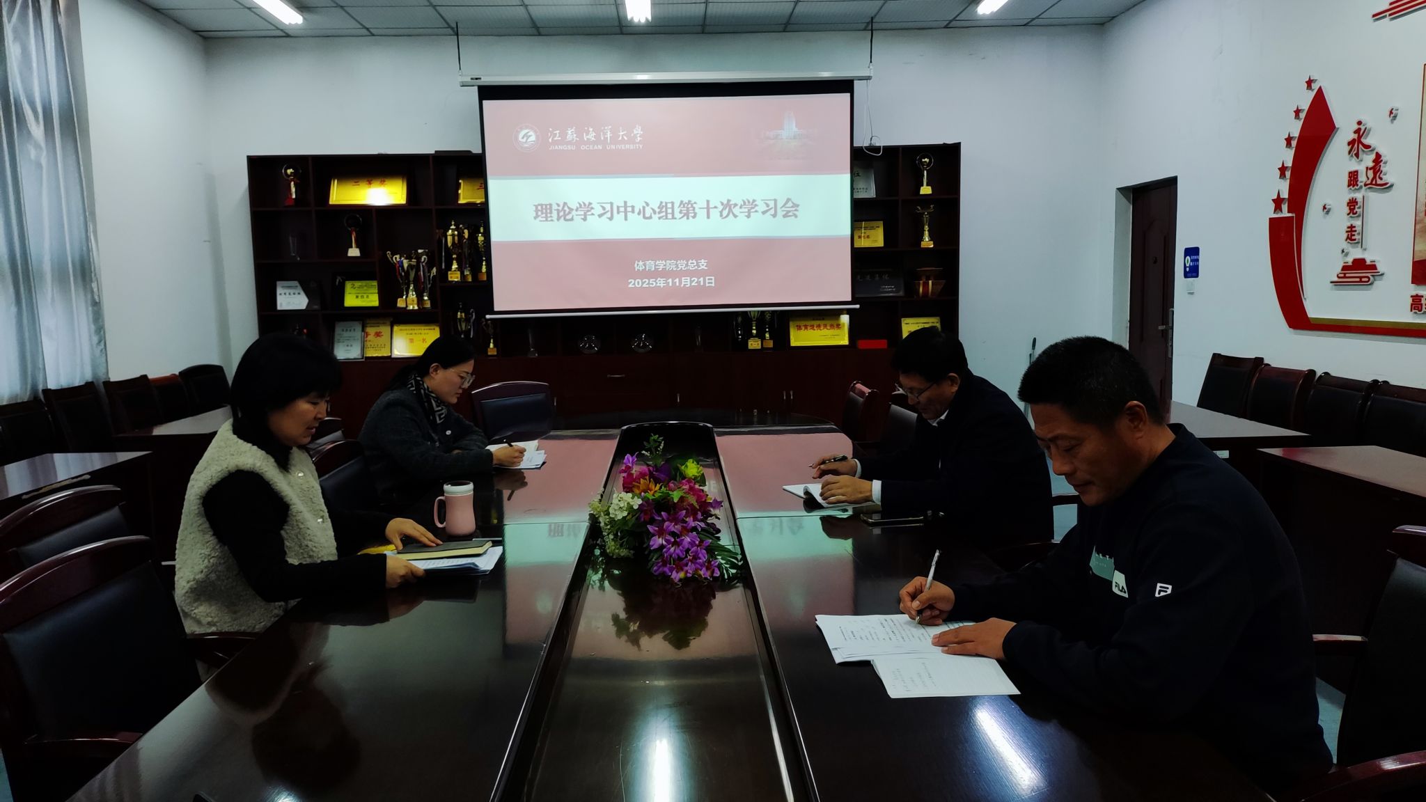 11月21日上午,体育学院党总支理论学习中心组第十次集中学习会在学院会议室召开,党总支书记张萍主持会议,学院领导班子及总支委员参加学习。