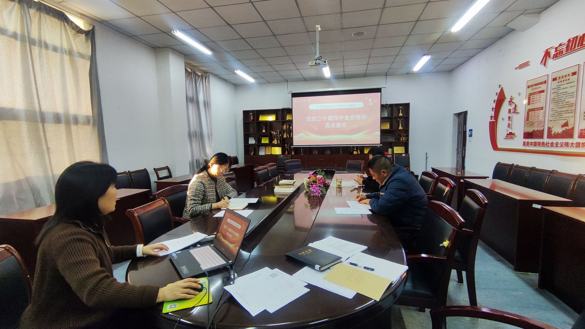 会议严格落实“第一议题”制度,张萍书记首先以“党的二十届四中全会精神亮点述览”为题,为全体参会人员作专题讲解,系统梳理全会核心要义与实践要求,引导大家深刻把握精神实质。随后,张萍书记带领大家学习了习近平总书记在庆祝中华人民共和国成立76周年招待会上的重要讲话。院长张伦厚领学习近平总书记在中共中央政治局第二十二次集体学习时的重要讲话精神,副书记李淑华领学习近平总书记主持召开中共中央政治局会议精神,何金老师领学习近平总书记在听取新疆维吾尔自治区党委和政府工作汇报时的重要讲话精神。