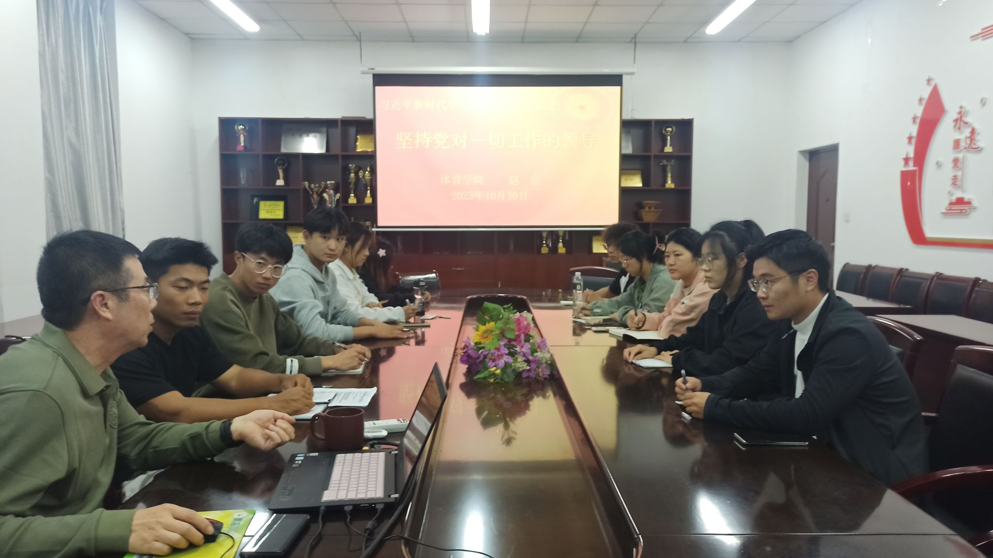 为深入学习宣传贯彻党的二十大精神,提升入党积极分子的政治觉悟和理论素养,进一步明确入党目的、端正入党动机,10月30日晚上,体育学院院长赵宏在学院会议室为入党积极分子上党课。