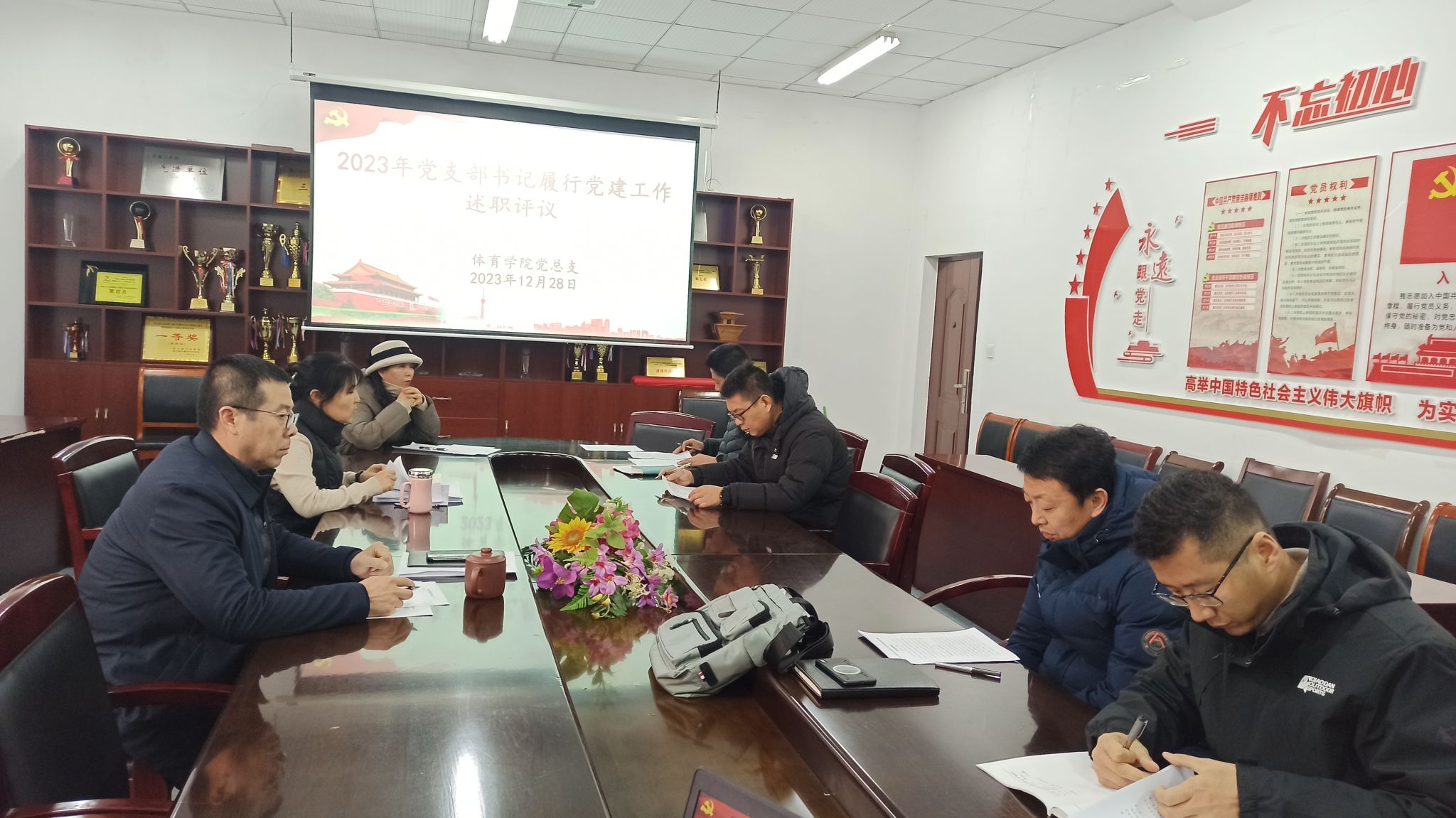 2023年12月28日,按照校党委的工作部署,体育学院党总支召开党支部书记履行党建工作述职评议考核会,会议由党总支书记张萍主持,学院党总支委员、各党支部书记参加了会议。