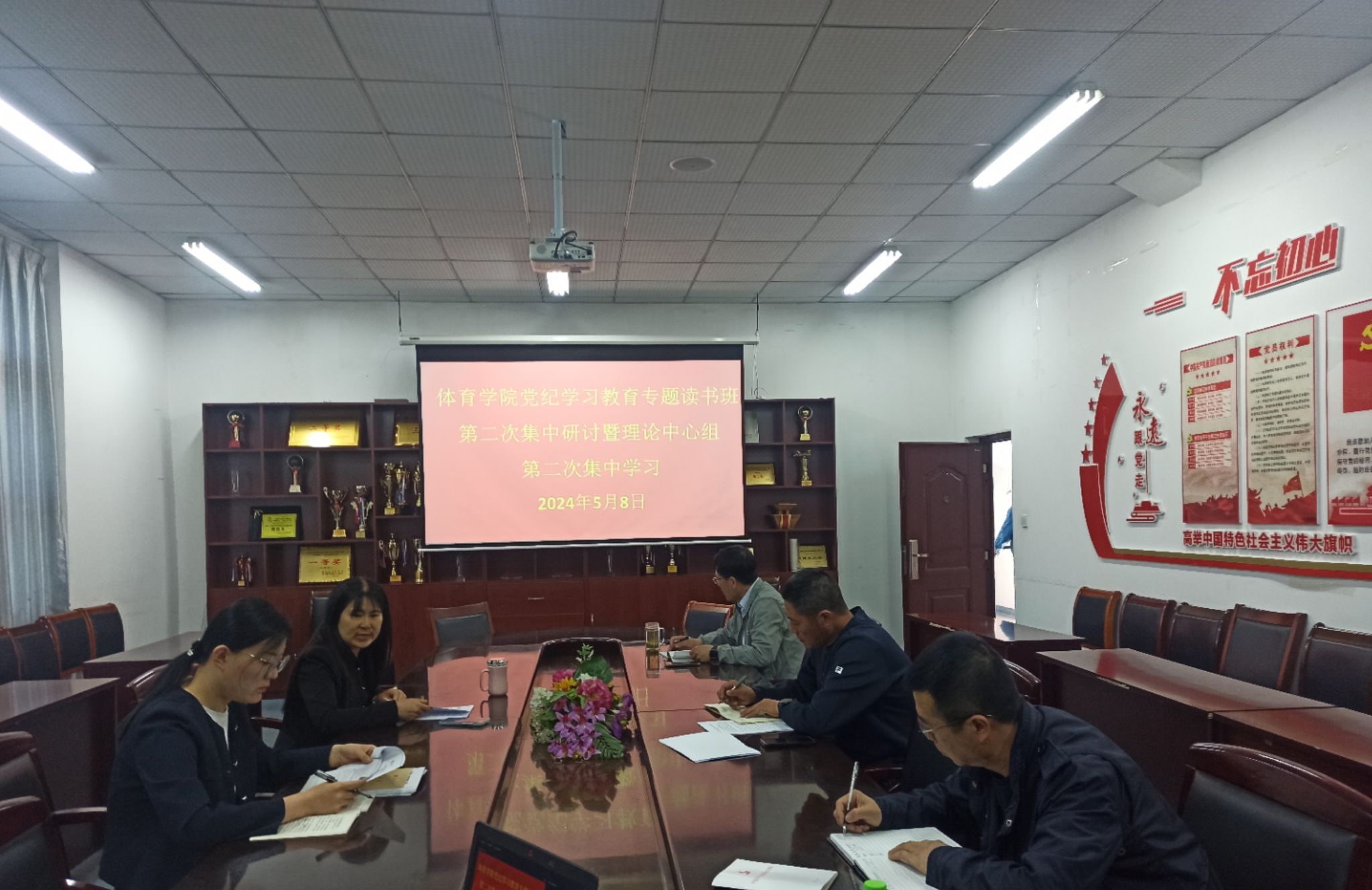 体育学院党纪学习教育专题读书班第二次集中研讨暨理论学习中心组第二次学习会于5月8日上午在学院会议室召开,党总支书记张萍主持学习会,学院领导班子成员及总支委员参加了学习。