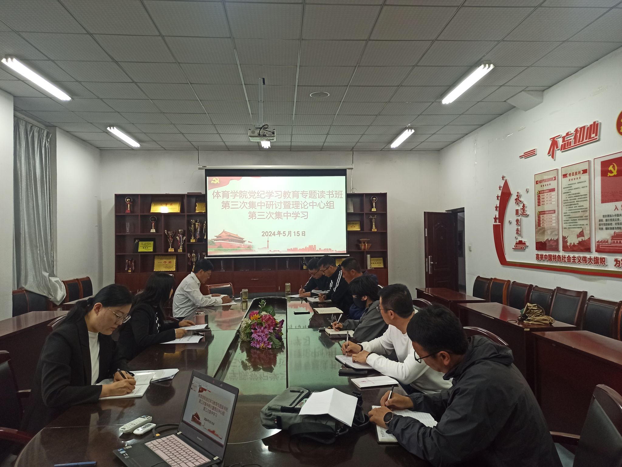 体育学院党纪学习教育专题读书班第三次集中研讨暨理论学习中心组第三次学习会于5月15日上午在学院会议室召开,学院领导班子成员、总支委员及各党支部正副书记参加了学习,学习会由党总支书记张萍主持。