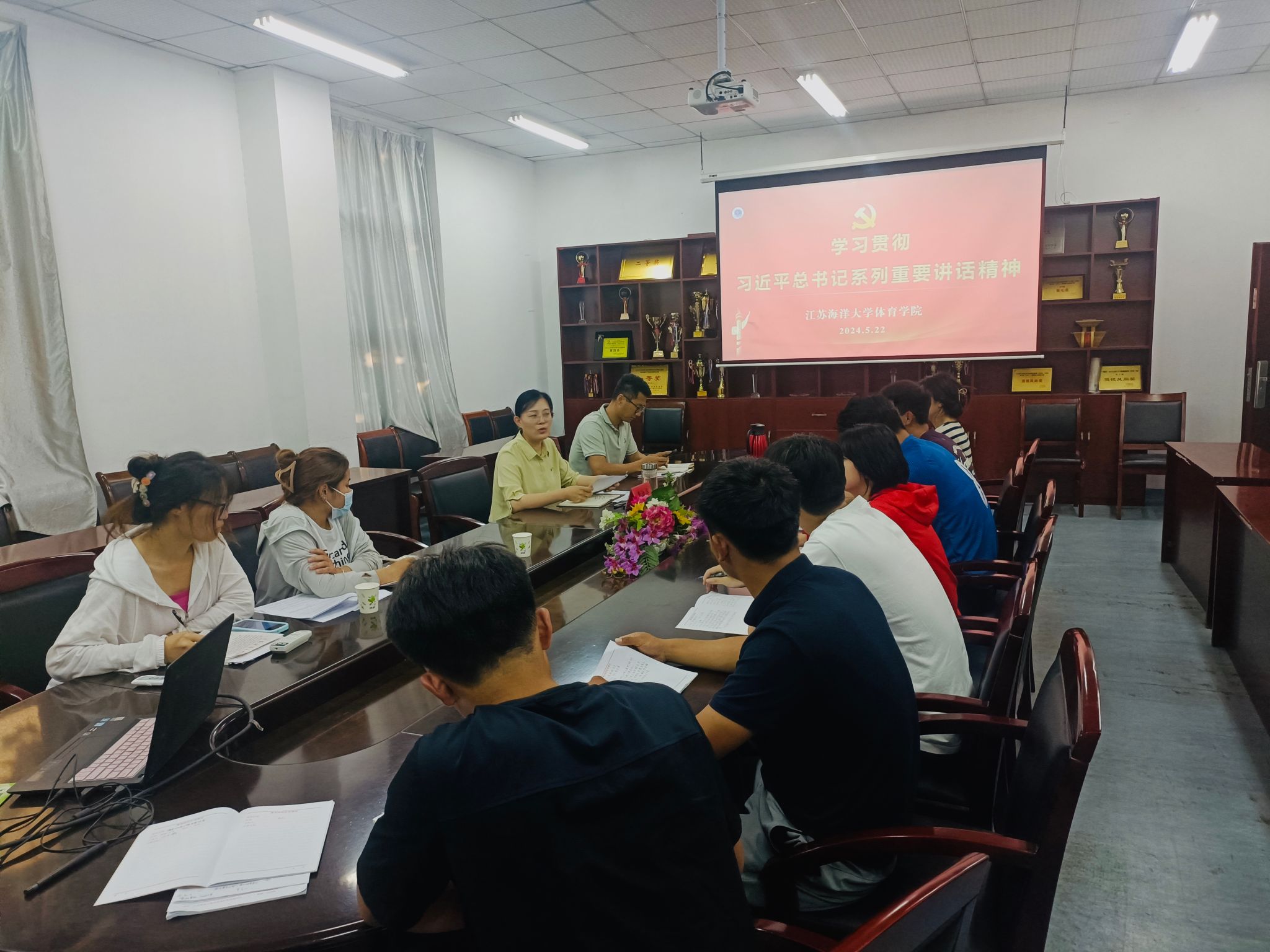为推进党纪学习教育走深走实,5月22日下午,体育学院党总支副书记李淑华在学院会议室为学生党员上“学习贯彻习近平总书记重要讲话精神”专题党课。会议由学生党支部书记仝友鹏主持,支部全体党员、学生发展对象参加。