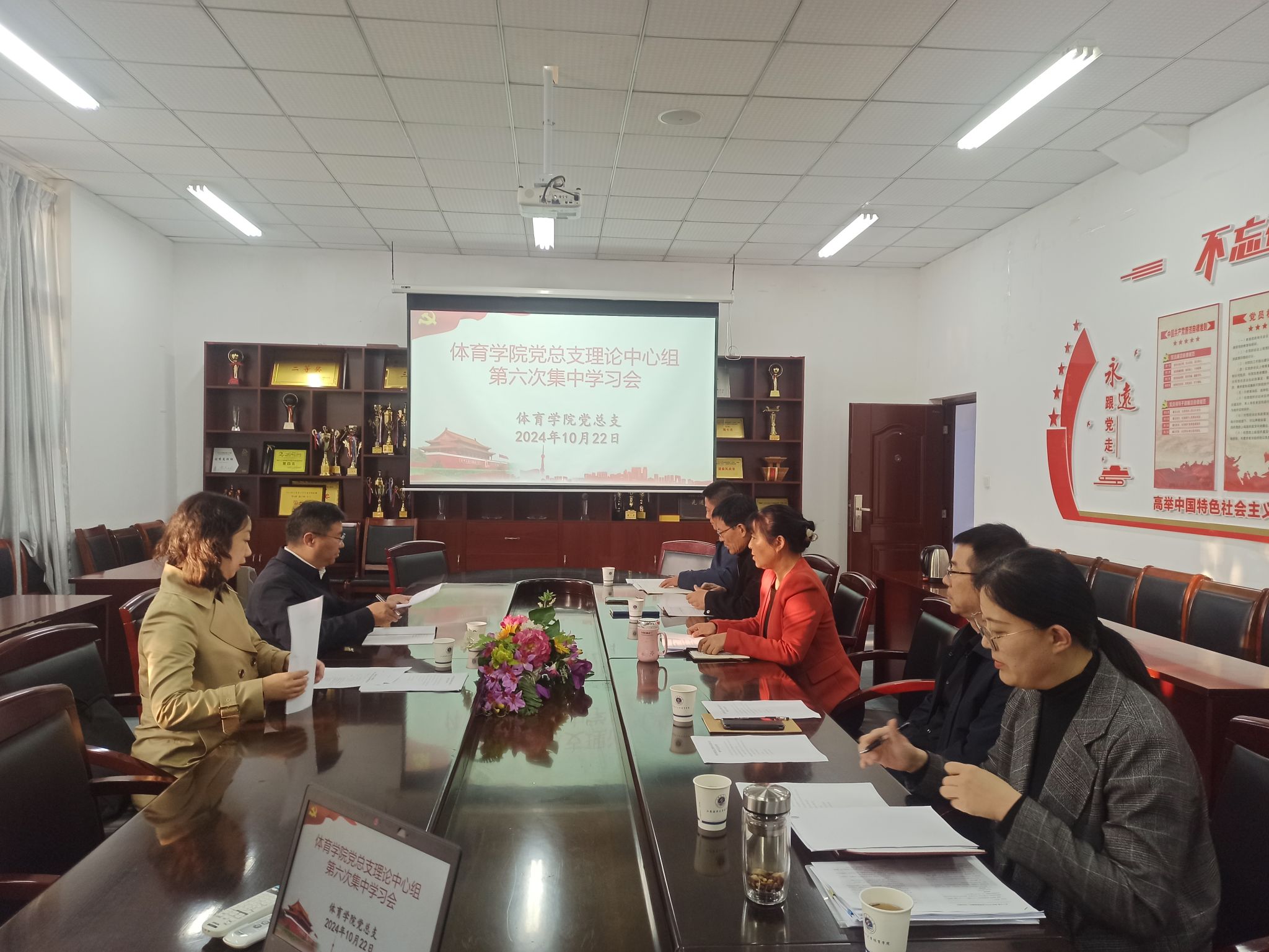 10月22日下午,体育学院党总支开展理论学习中心组第六次集中学习,副校长马廷淮到会指导并作点评,学习会由党总支书记张萍主持。