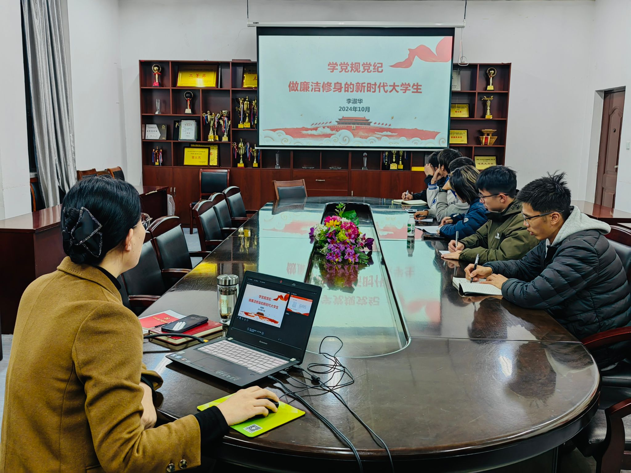培训伊始,李淑华表示入党积极分子队伍是党员队伍的后备军,作为入党积极分子,要时刻牢记党的宗旨,严格遵守党规党纪,树立正确的世界观、人生观和价值观。李淑华首先为同学们解读了中央八项规定精神和《中国共产党廉洁自律准则》的要求,接下来对《中国共产党纪律处分条例》做了重点讲解,并分别列举了违反“六大”纪律的警示案例,以真实案例事件敲响警钟,希望学生们引以为戒,切勿触碰“红线”。李淑华表示《条例》作为管党治党的重要基础性党内法规,对各级党组织和全体党员的行为有着重要的规范和指引作用。同学们要想成为一名合格的党员,就要严格遵守党的纪律和规矩,保持廉洁自律,坚守道德底线,树立良好作风和形象。