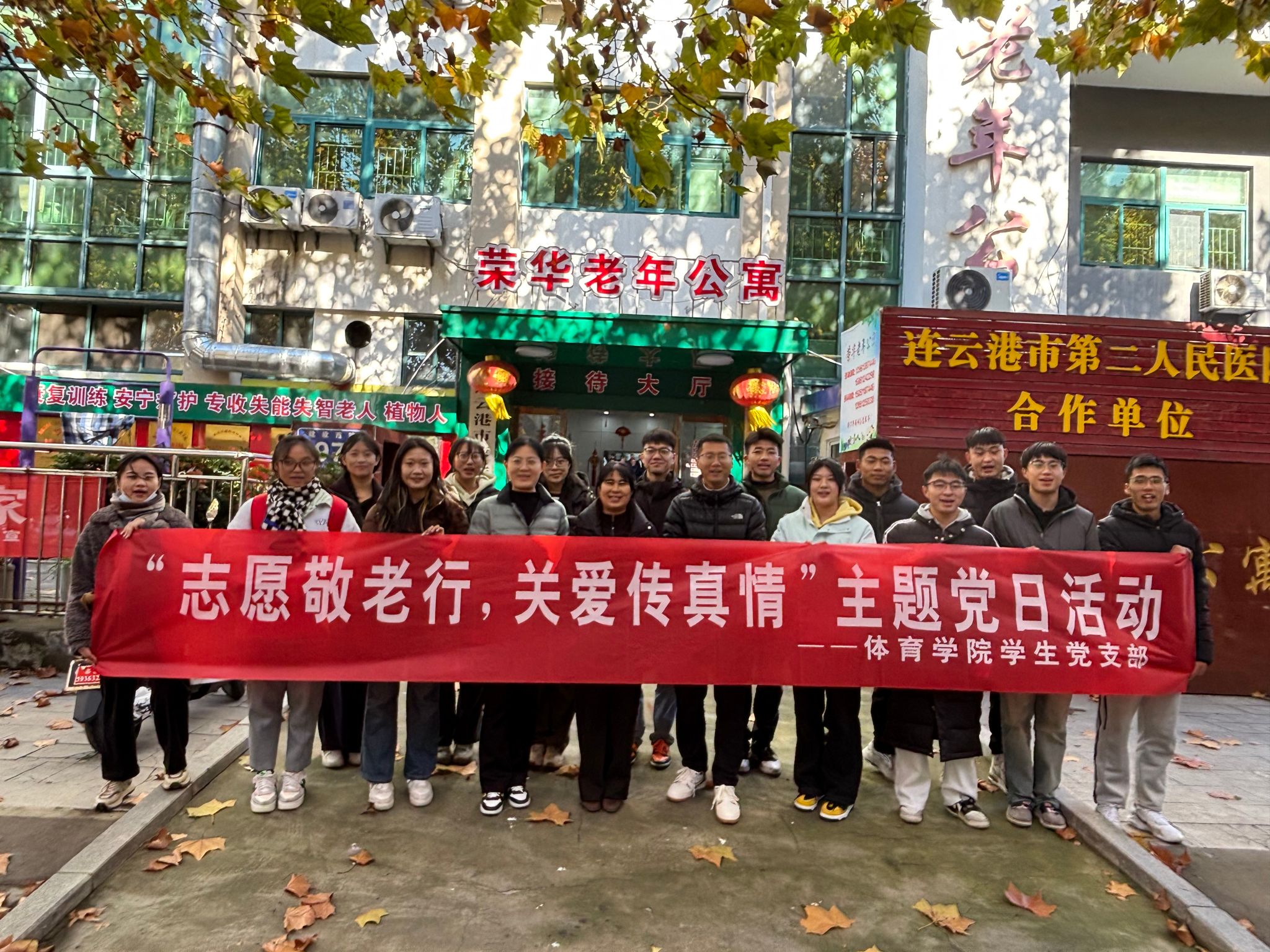 为弘扬中华民族尊老敬老的传统美德,增强学生党员的社会责任感,11月26日上午,体育学院党总支书记张萍带领学院学生党支部党员走进连云港荣华老年公寓,开展了以“志愿敬老行 关爱传真情”为主题的党日活动。