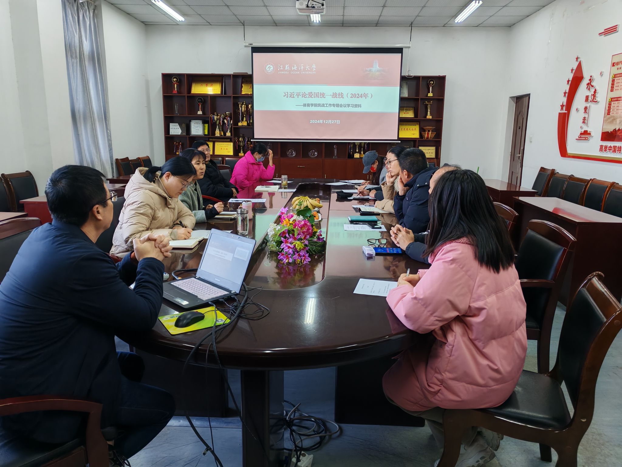 12月27日上午,体育学院在会议室召开“共绘同心圆,奋进谱新篇”统战工作座谈会,学院领导班子、总支委员、工会委员及各民主党派代表参加了会议,会议由党总支书记张萍主持。