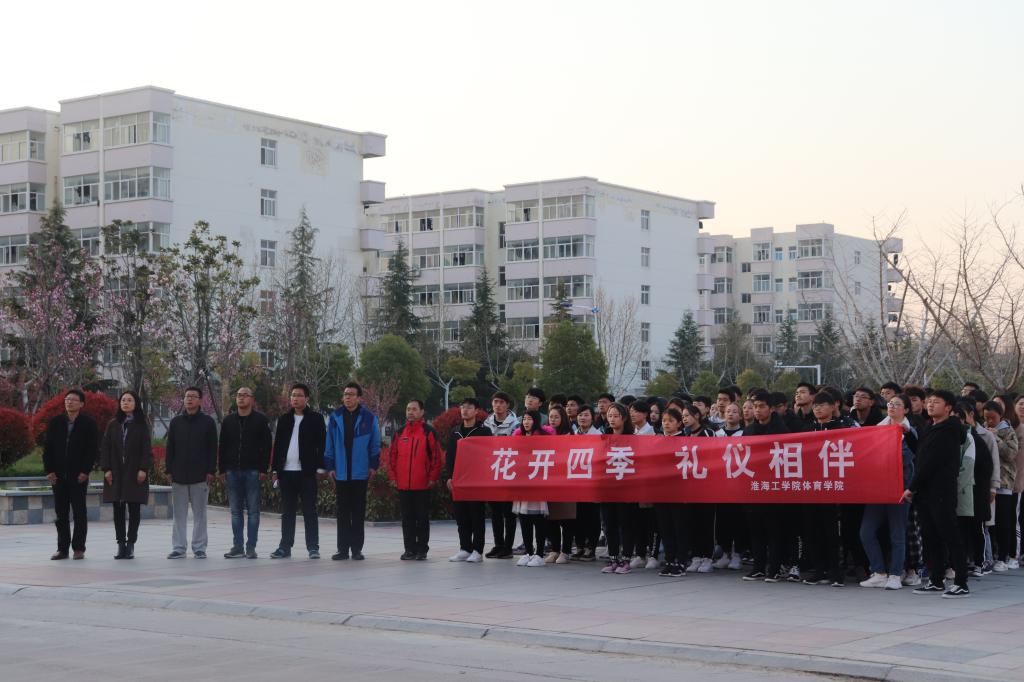 4月1日早晨,体育学院“花开四季,礼仪相伴”主题升旗仪式在淮海工学院西广场举行。学院党政领导、辅导员、2016、2017、2018级班主任及学生参加升旗仪式。