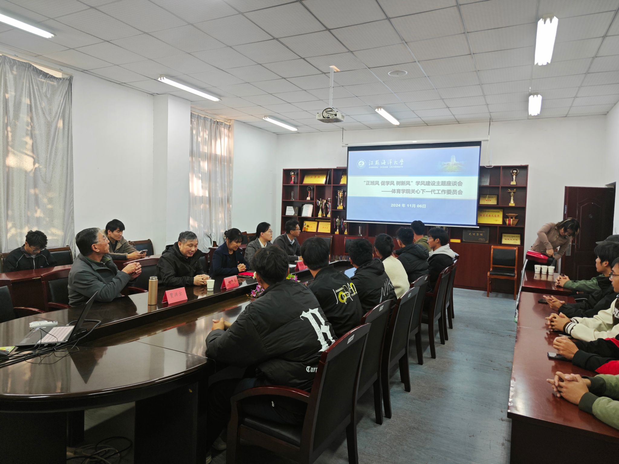 为进一步加强学风建设,营造良好的学习氛围,助力青年大学生成长成才,11月6日,体育学院在会议室开展“正班风 促学风 树新风”学风建设主题座谈会。会议邀请了退休教师赵季春、贾洪全,体育学院关工委主任张萍、副主任李淑华、秘书长仝友鹏出席座谈会,学院团学组织及各班级学生干部参加。会议由学院党总支副书记李淑华主持。