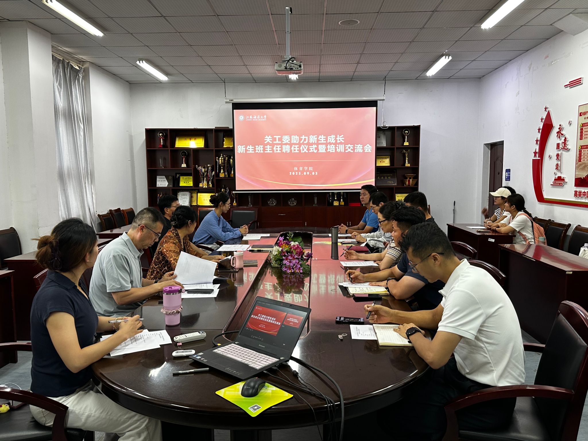为充分发挥班主任在学生成长成才中的引领作用,同时依托学院关工委力量为学生教育管理工作筑牢基础,9月3日,体育学院组织开展2025级新生班主任聘任暨班主任培训交流会。学院党总支书记、关工委主任张萍,院长、关工委副主任张伦厚,学院关工委委员赵宏,辅导员及全体班主任参会。