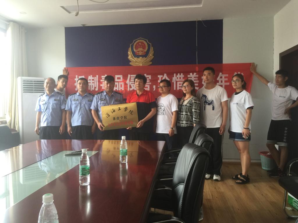 2017年7月7日,淮海工学院体育学院大学生社会实践基地挂牌仪式在连云港市公安局海州分局禁毒大队隆重举行。体育学院党总支书记刘传祥、校团委副书记朱小明、市公安局海州分局政治部主任孙健、市公安局海州分局禁毒大队队长杨再兴、教导员刘波、校后勤管理处徐莉老师、体育学院分团委副书记武传钟老师及体育学院“生命光华”暑期社会实践小分队全体成员参加了本次活动。