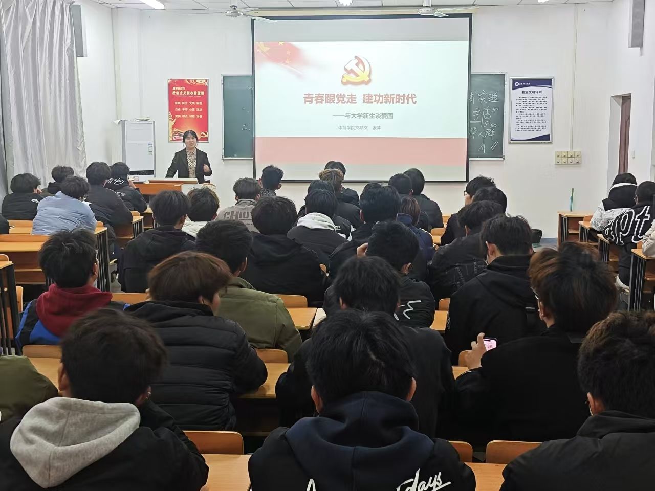 为加强新生入学教育,培养学生的爱国情怀和民族自豪感,体育学院于11月7日晚在学院212室开展了一场“青春跟党走 建功新时代”专题报告会。讲座由体育学院党总支书记张萍主讲,学院党总支副书记李淑华主持,学院2024级全体新生参加。