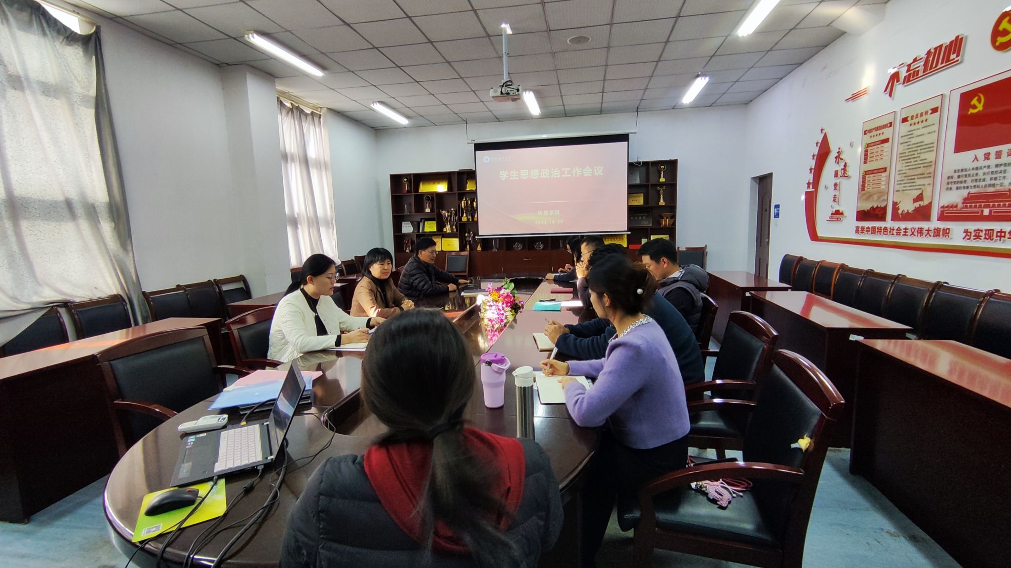 10月29日下午,体育学院在会议室召开学生思想政治工作专题会议,学院领导班子,党政办、教学办、学工办主任和全体班主任参会,会议由党总支副书记李淑华主持。