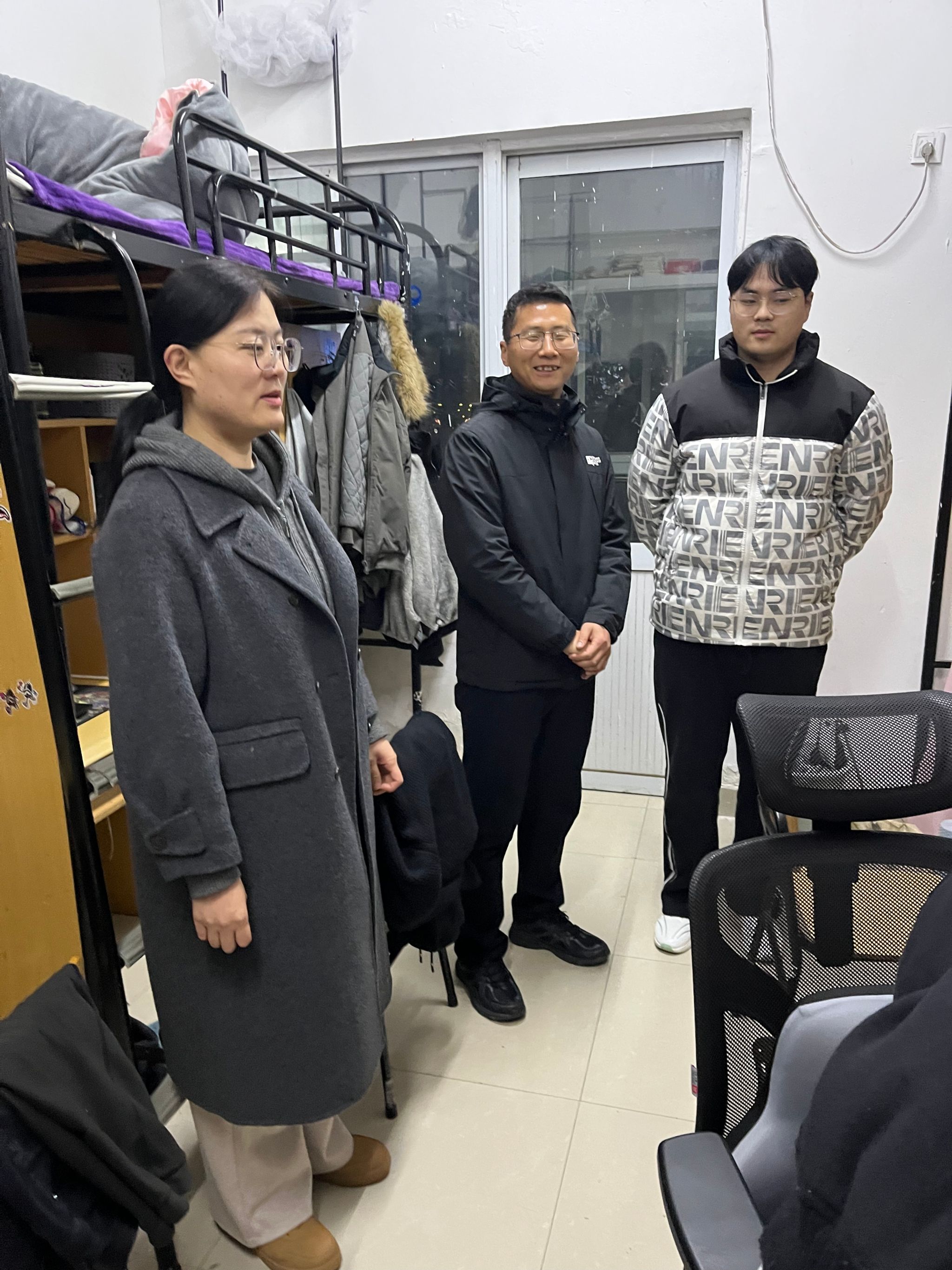 为切实筑牢学生安全防线,强化宿舍安全管理,3月2日,体育学院党总支副书记李淑华、辅导员仝友鹏及班主任深入学生宿舍开展走访排查,与同学们面对面交流,把关怀与指导送到宿舍一线。