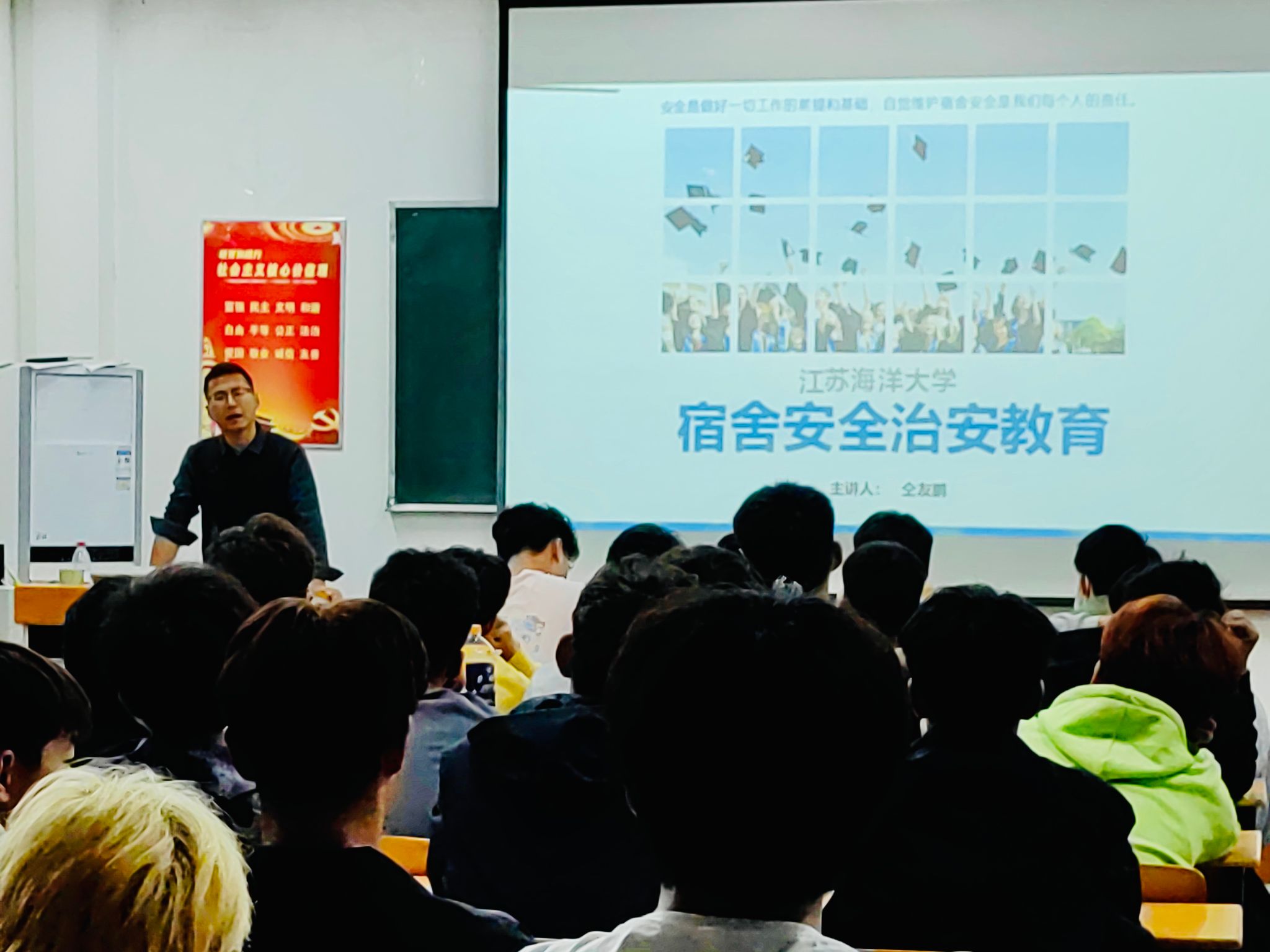 为增强同学们的安全防范意识,提高同学们的安全防范能力,全面普及校园安全常识,创建平安美好校园。体育学院于10月25日晚在212教室召开了“宿舍安全与治安教育”主题讲座,学工办主任仝友鹏主讲,23级全体新生参加。
