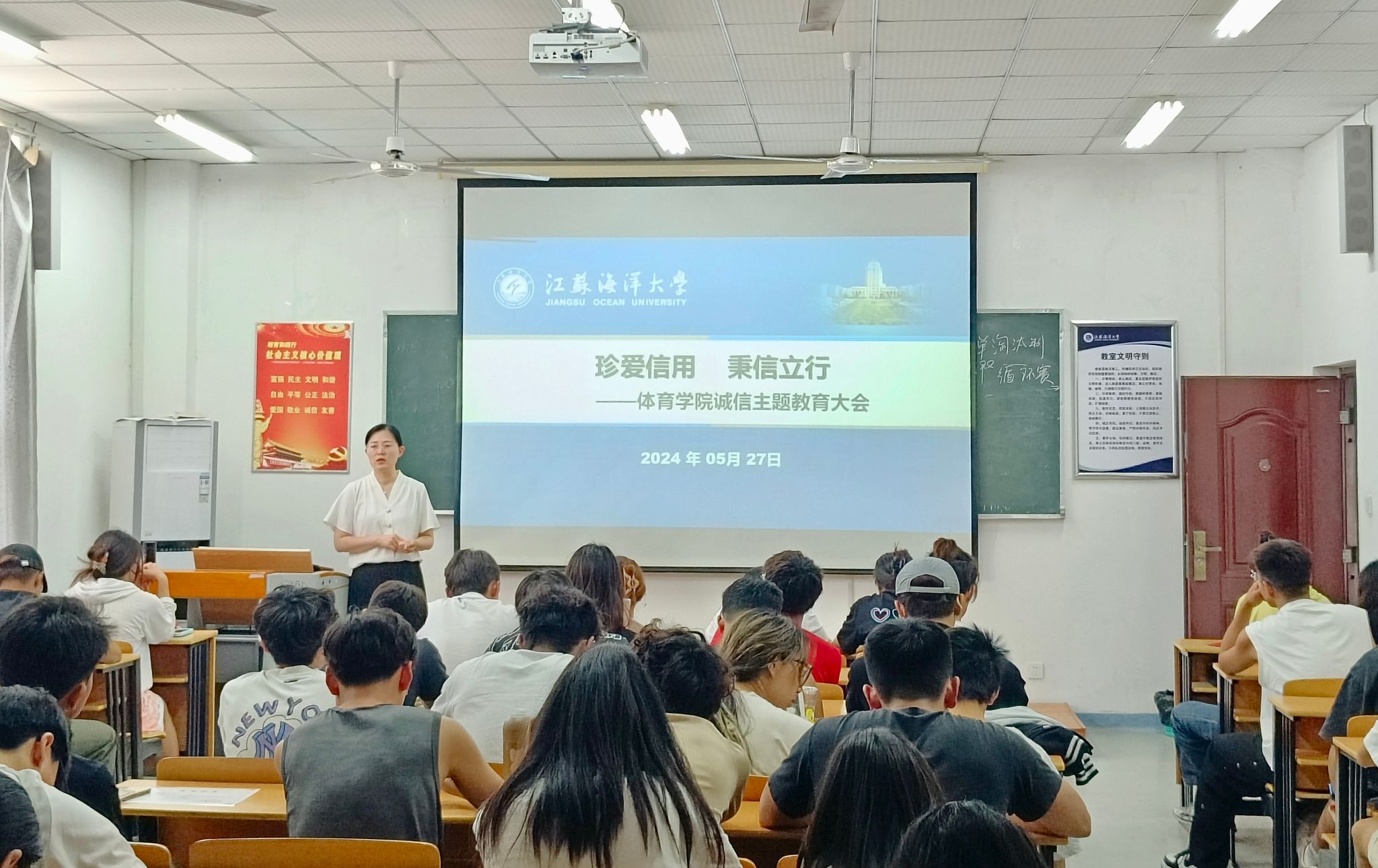 为引导学生更好地践行社会主义核心价值观,牢固树立诚信意识,培育诚信做人、诚信做事的校园氛围。5月27日上午,体育学院开展“珍爱信用 秉信立行”诚信主题教育大会。体育学院党总支副书记李淑华出席会议,学工办主任仝友鹏主持,学院2021级全体学生和各年级学生代表参加会议。